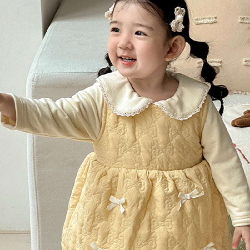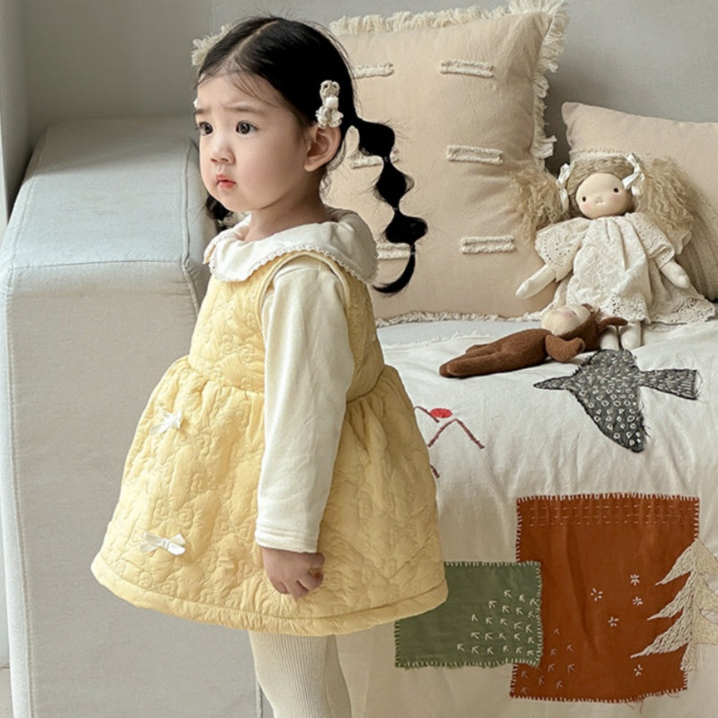 【73-100cm】 キルティング 蝶結び ジャンパースカート