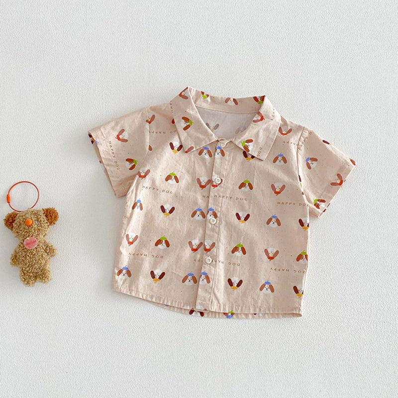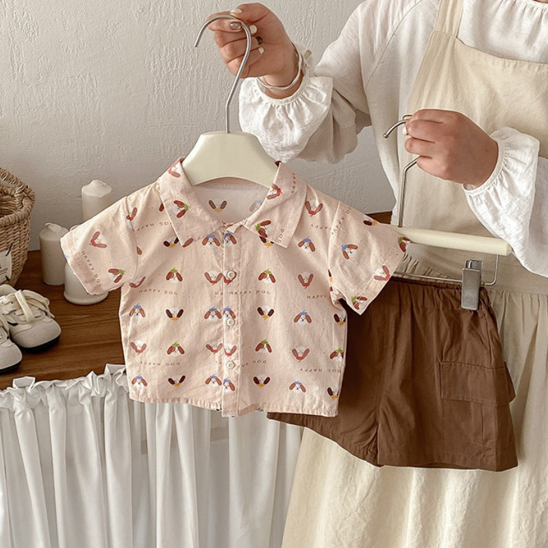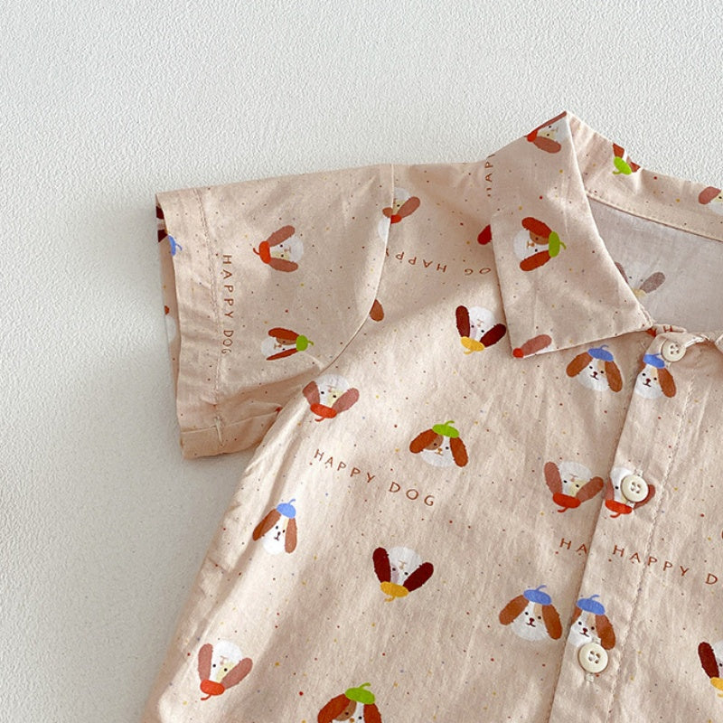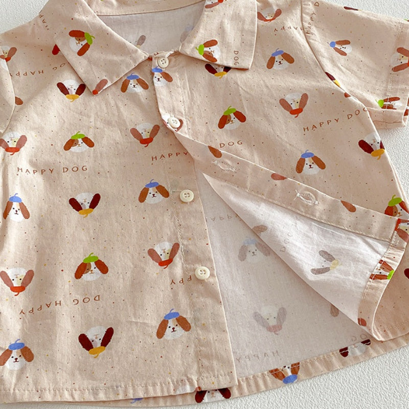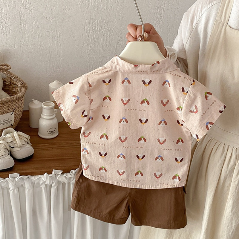 【73-100cm】セットアップ シャツ&ショートパンツ ベビー わんちゃん総柄