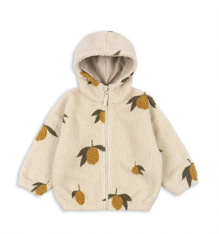【80-110cm】 ヨーロッパ風 フリースレモンorチェリー柄 オールインワン