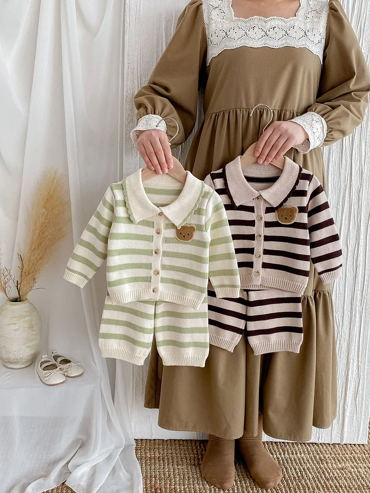 【73-110cm】熊ボーダー ニット トップス or ボトムス