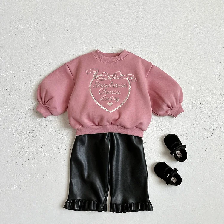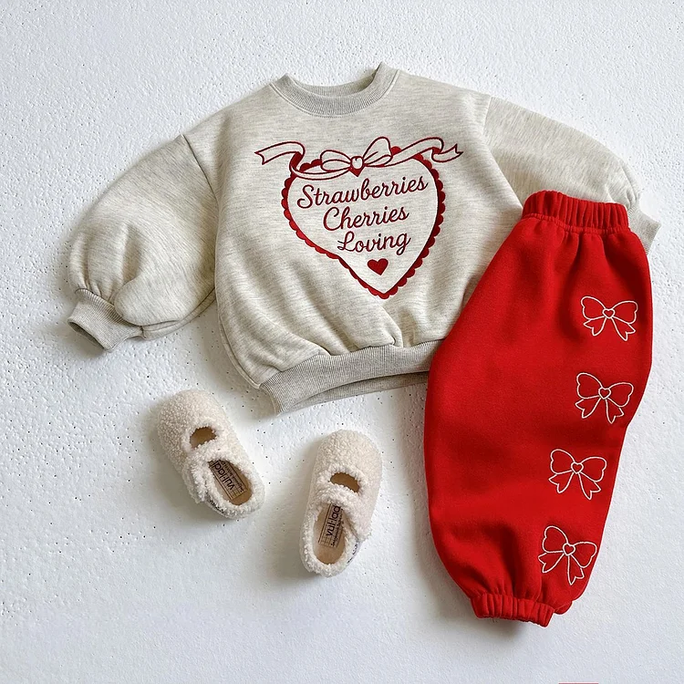 【73-120cm】 リボン 英字 カジュアル セットアップ