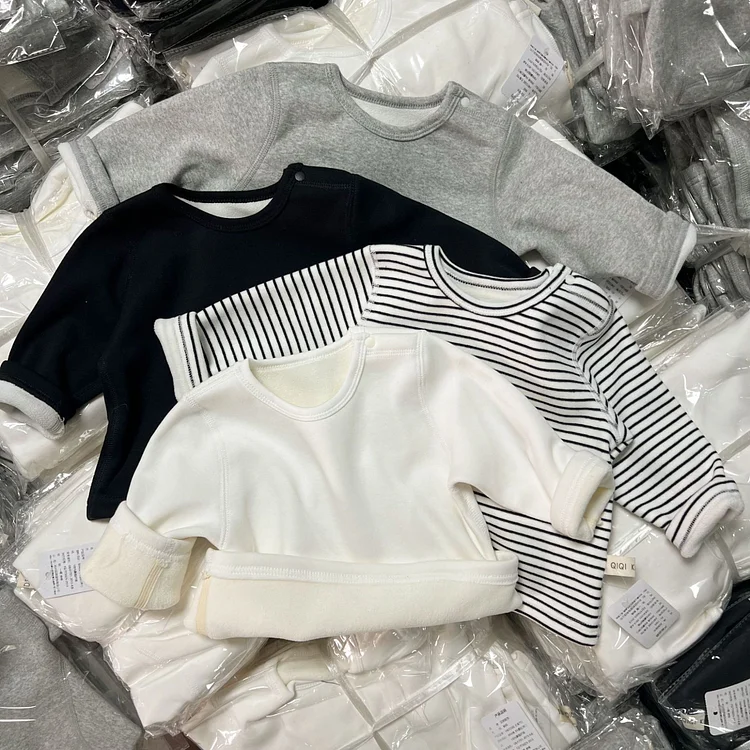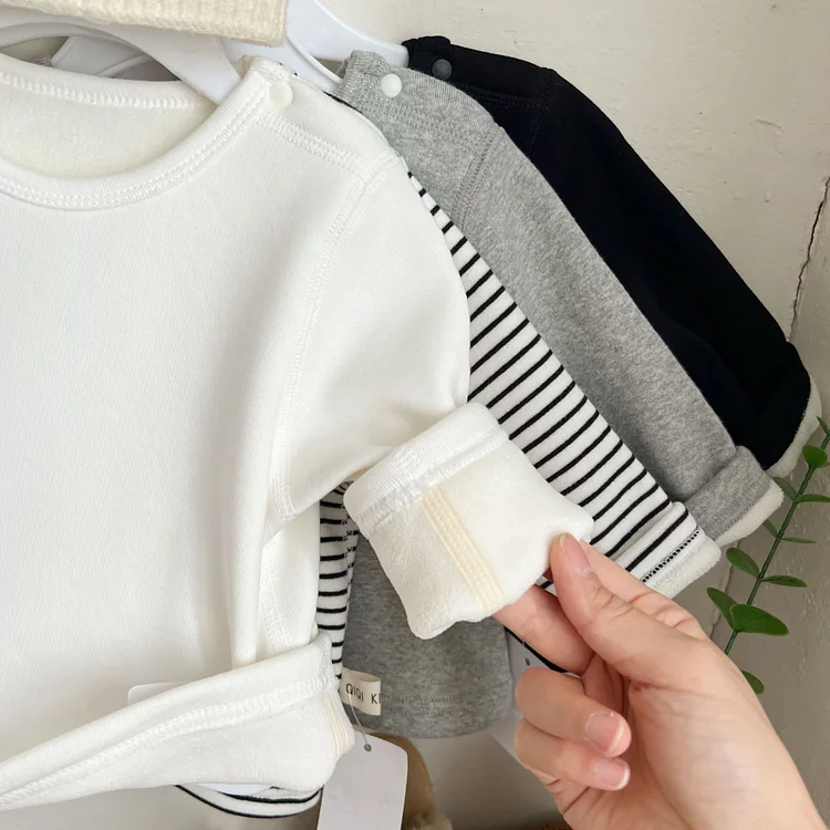 【73-110cm】 サイドボタン クール ネックボア トップス