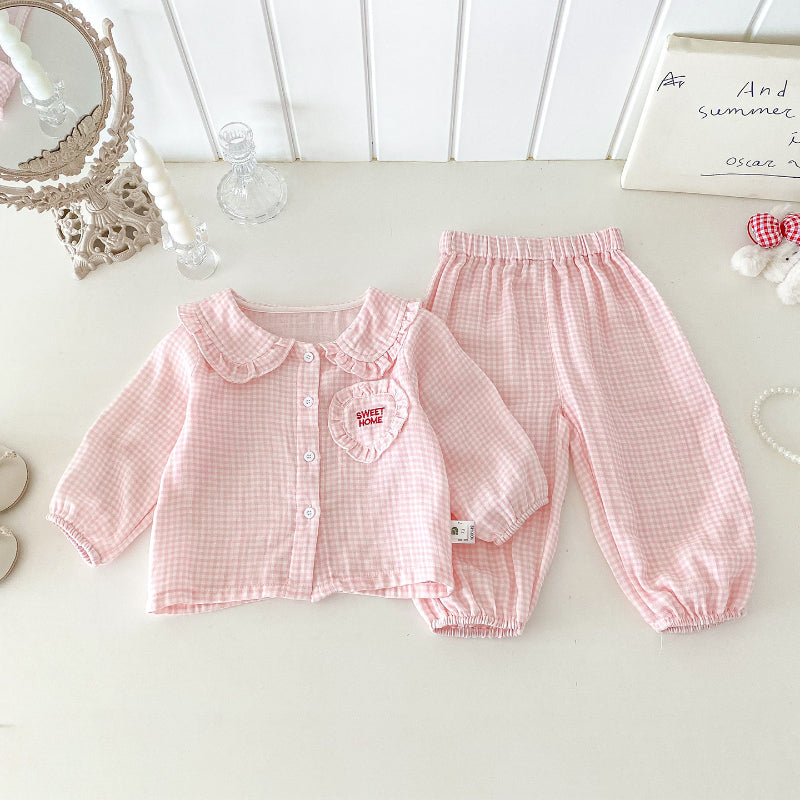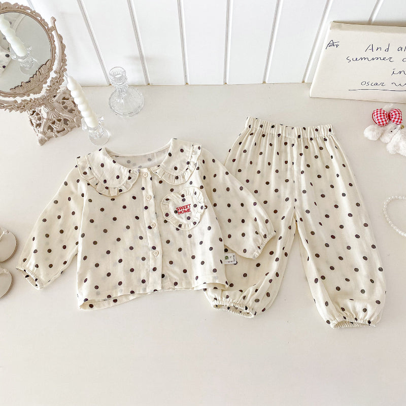 【73-100cm】ドット チェック ルームウェア セットアップ