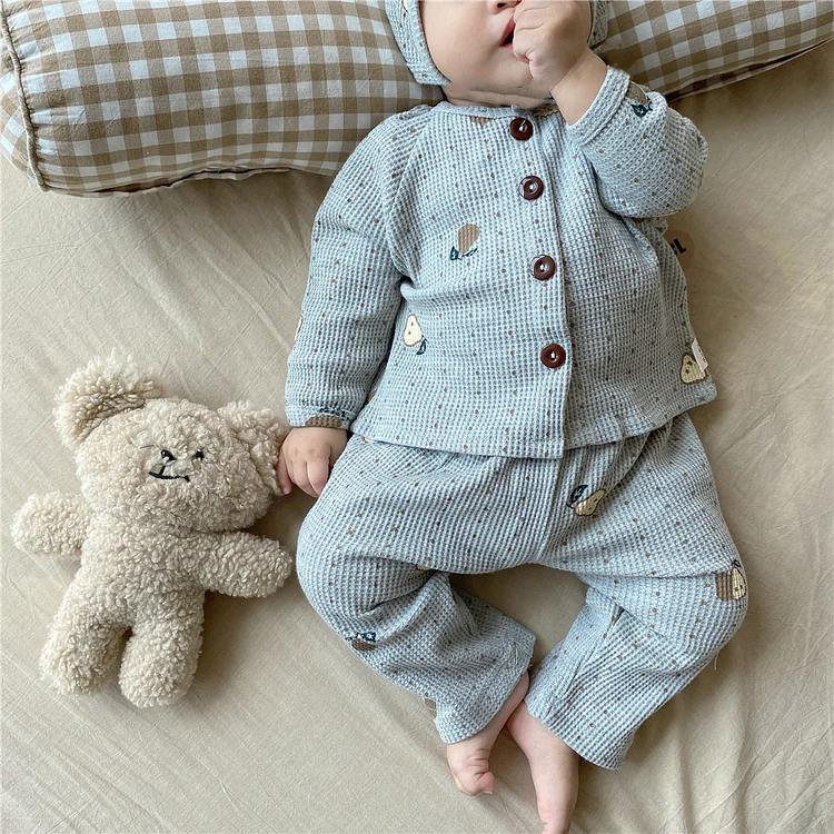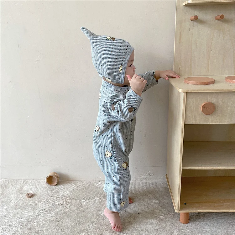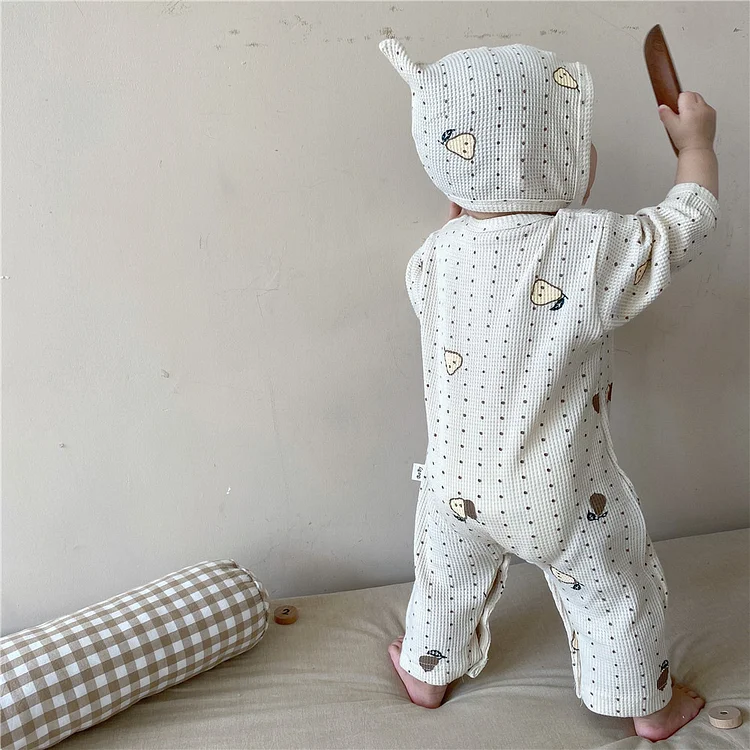 【66-90cm】帽子付き 梨柄 ワッフル オールインワン or セットアップ