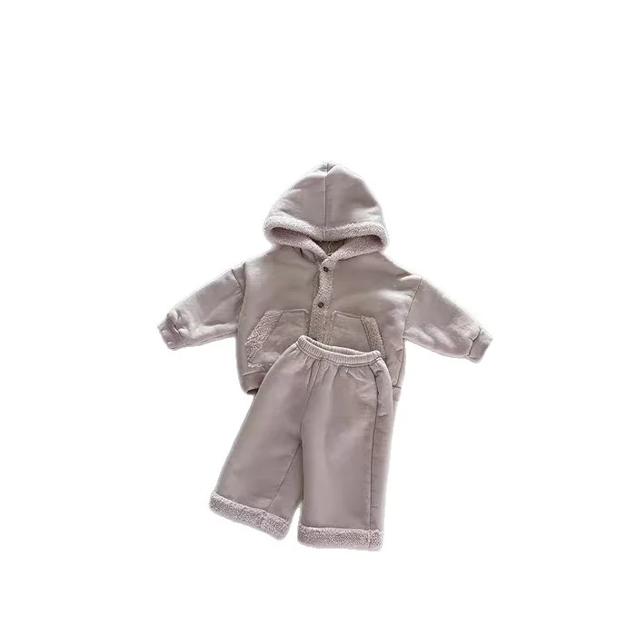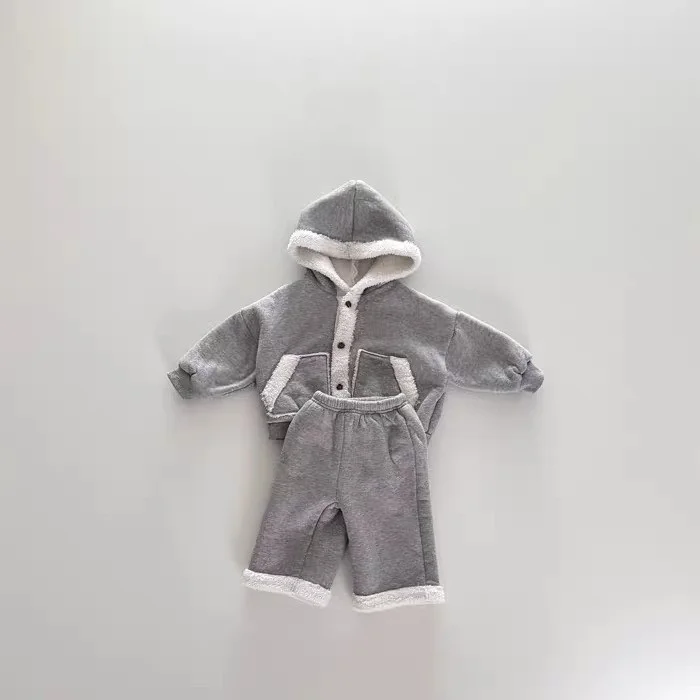 【73-120cm】 フード付き カジュアル ボア セットアップ