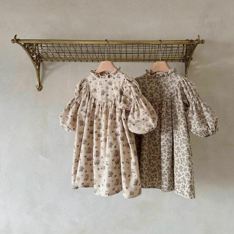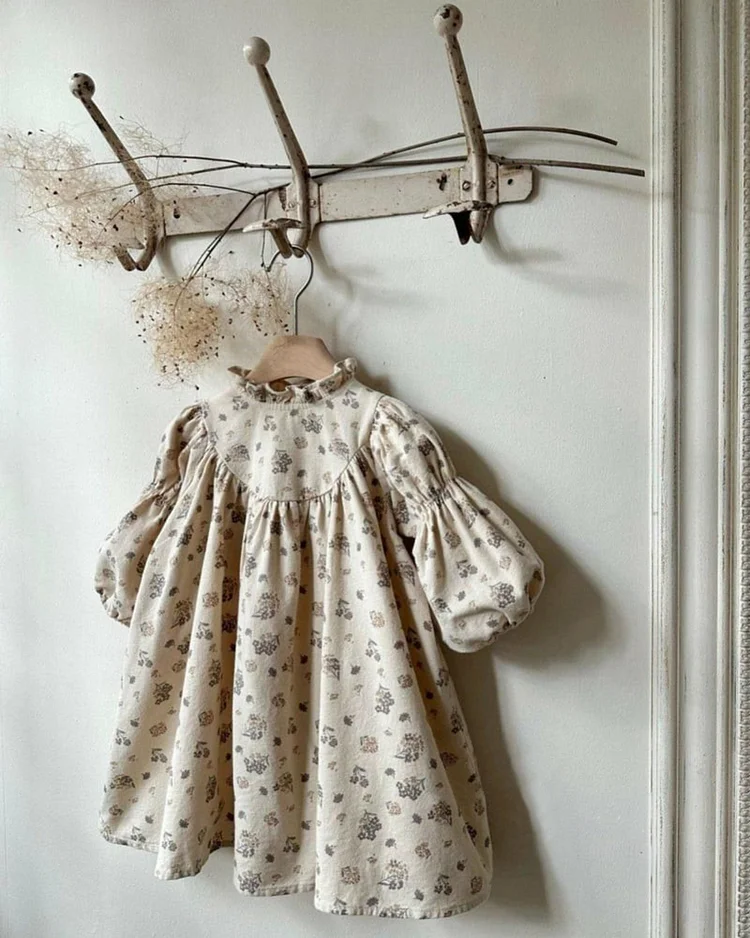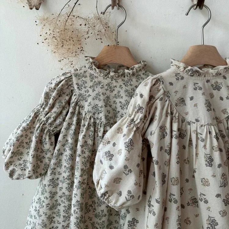 【73-100cm】フリル襟 小花柄 ワンピース