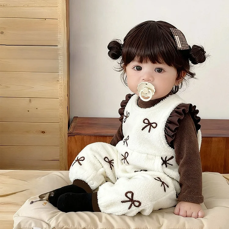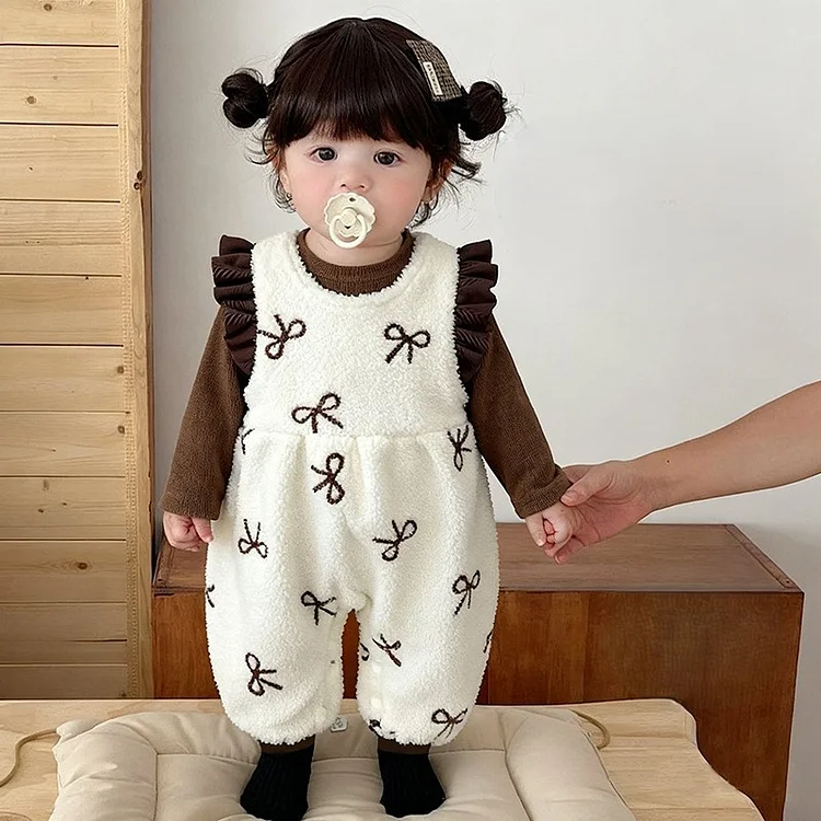 【73-100cm】 リボン柄 ボア オールインワン & インナー