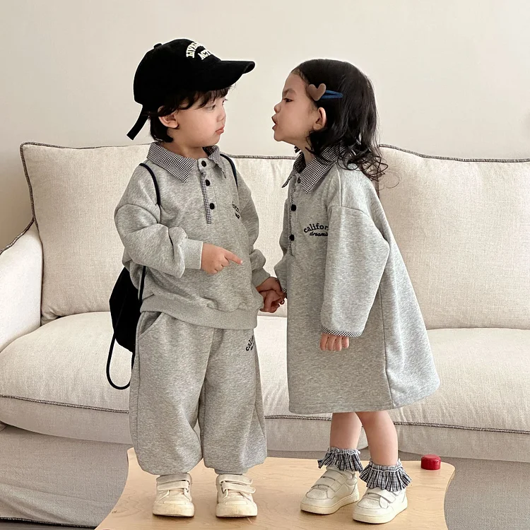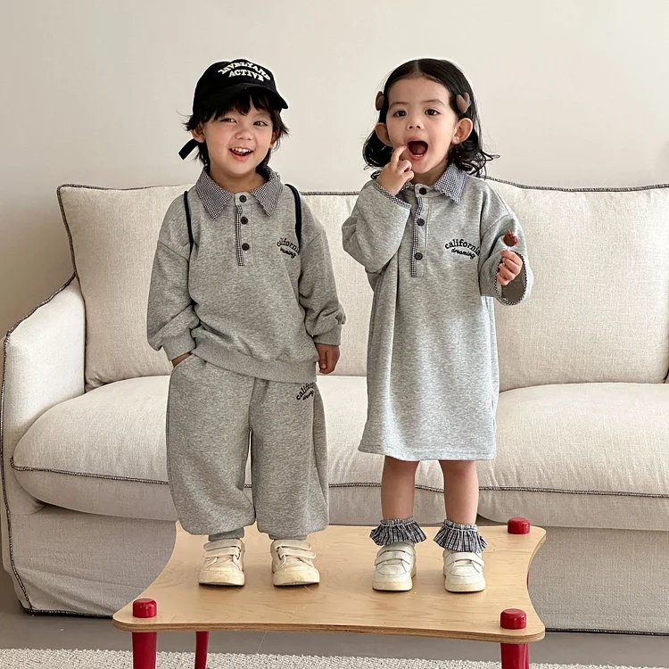 【80-150cm】 英字柄 poloデザイン カジュアル セットアップ or ワンピース