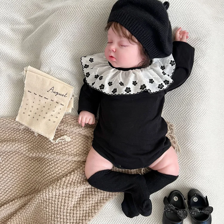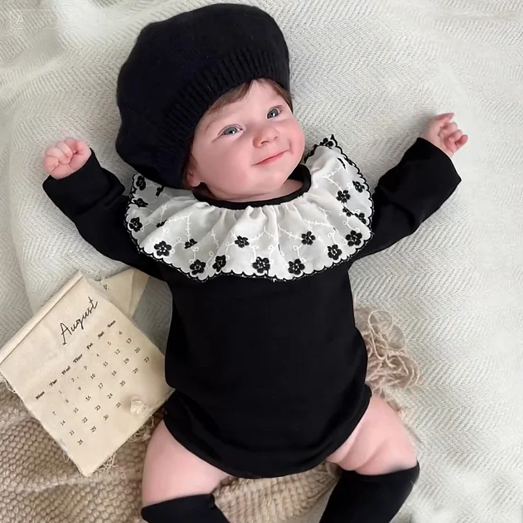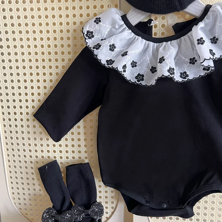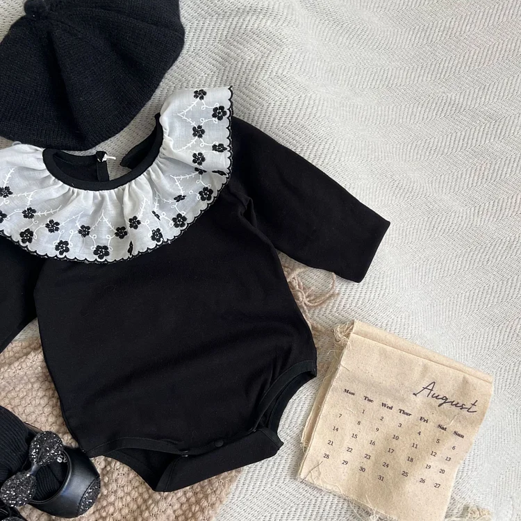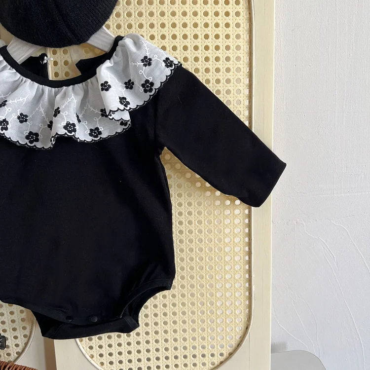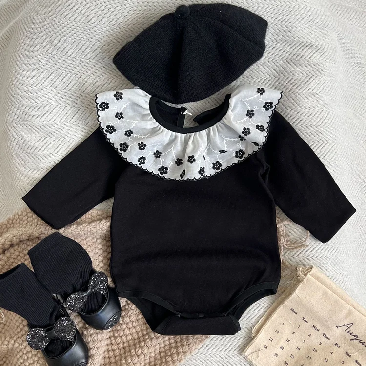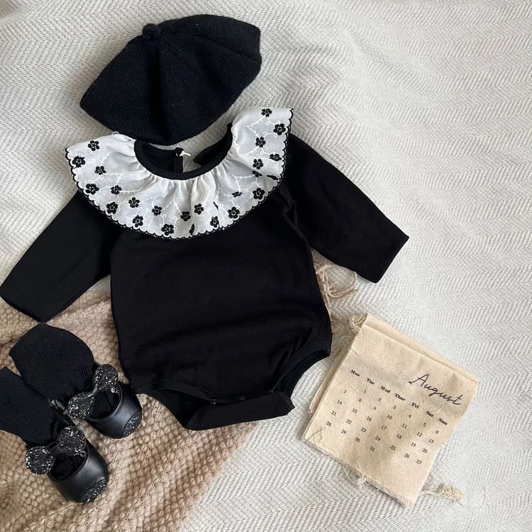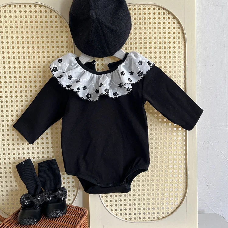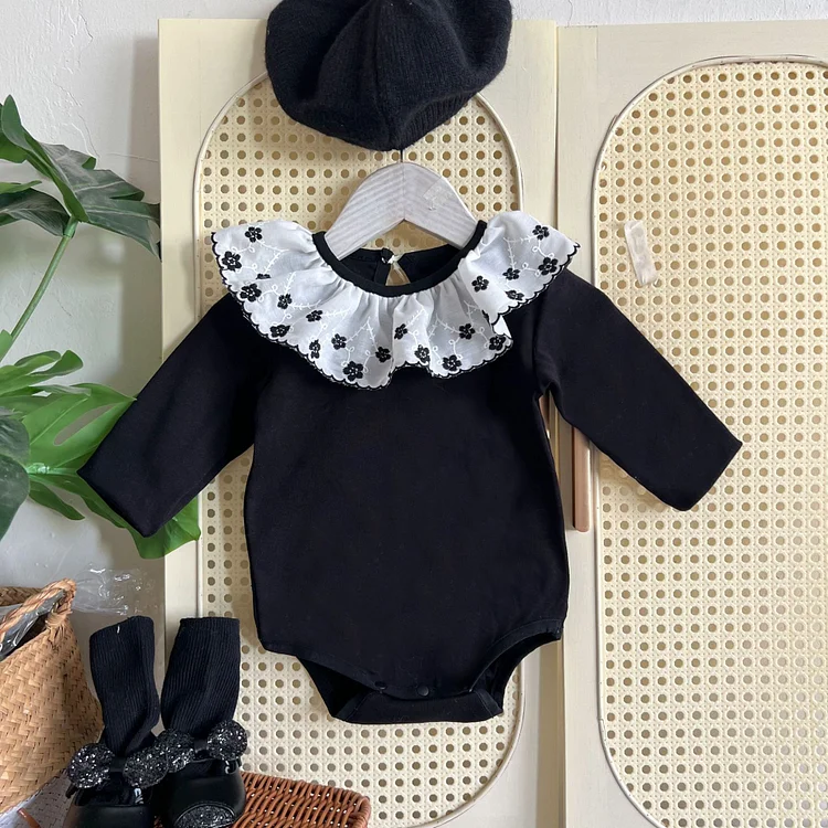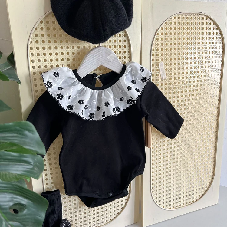 【66-90cm】 フラワー襟 ロンパース