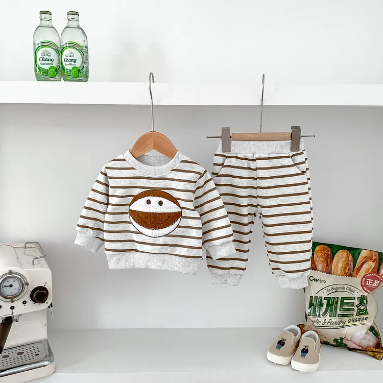【66-100cm】セットアップ 笑顔 ボーダー カジュアル 子供服