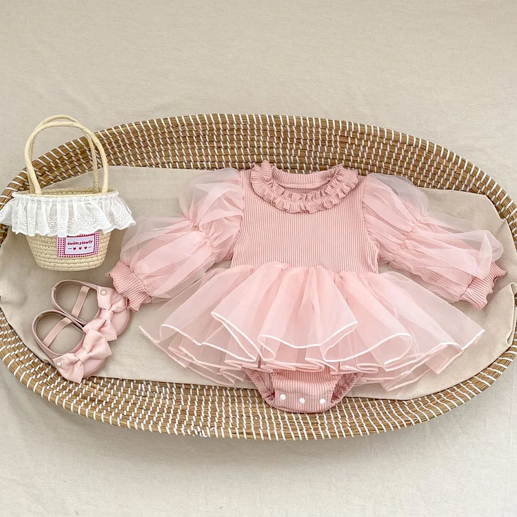 【66-130cm】ロンパース or ワンピース パフスリーブ 女の子 可愛い ベビー服