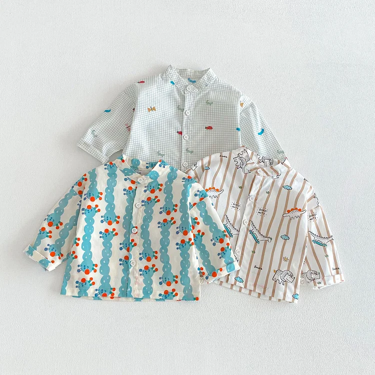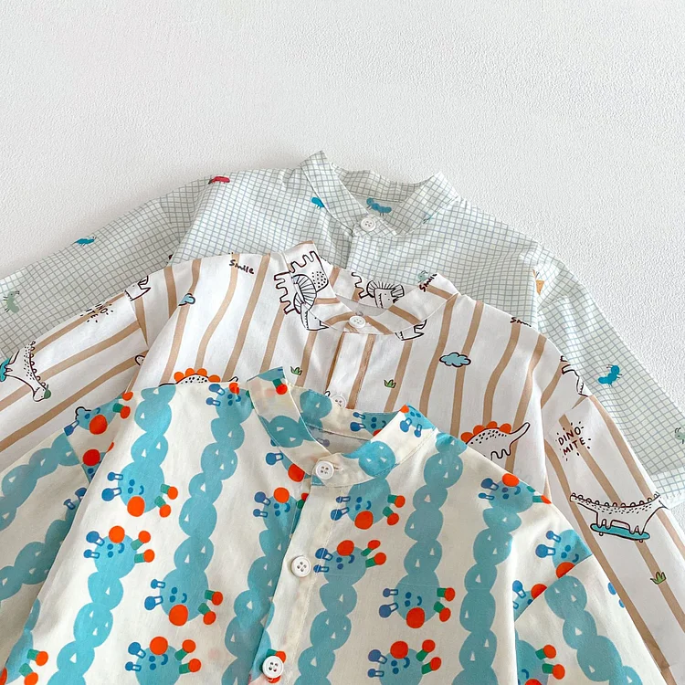 【73-110cm】シャツ 恐竜orチェリー柄 カジュアル