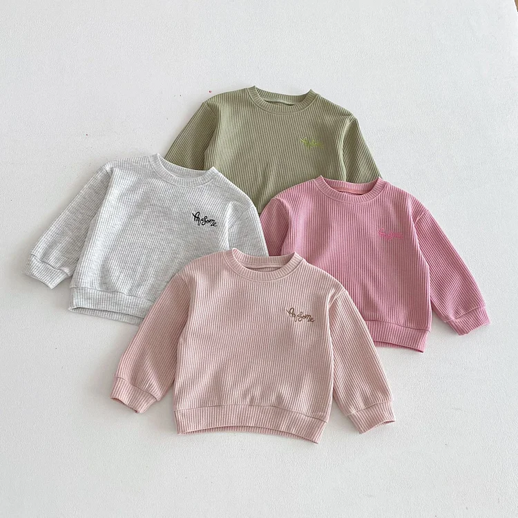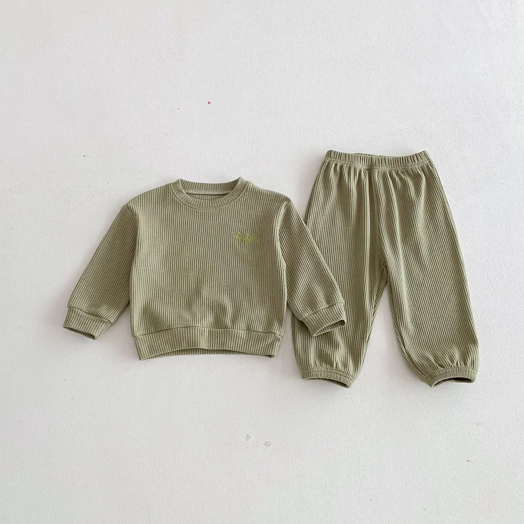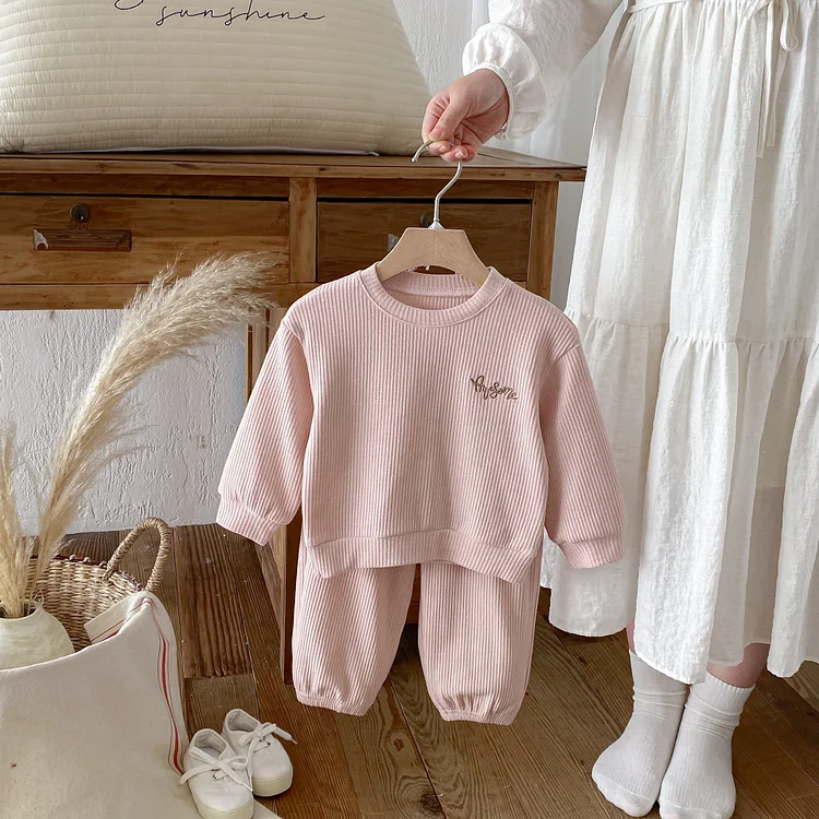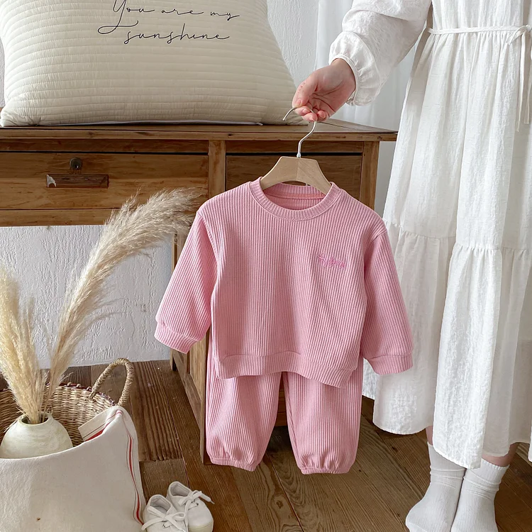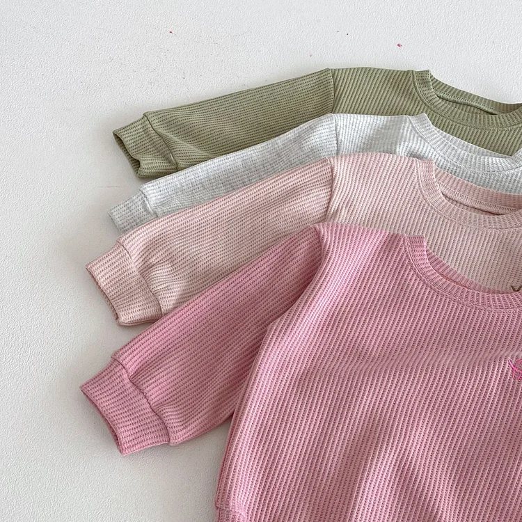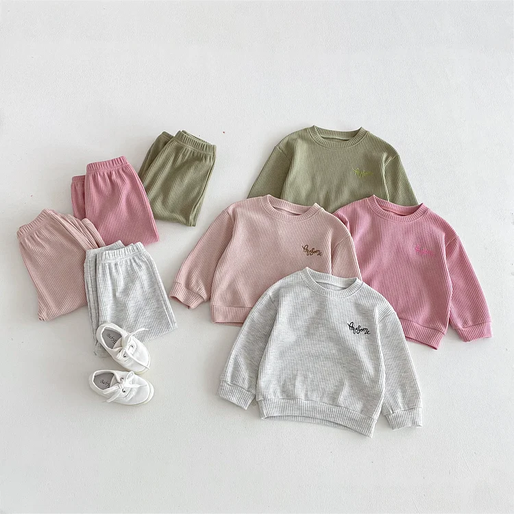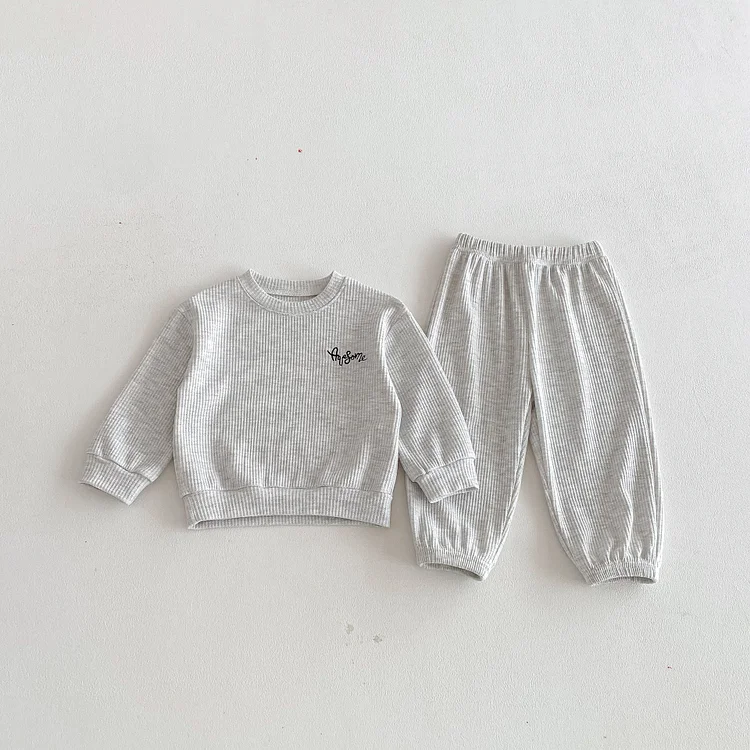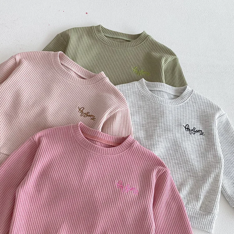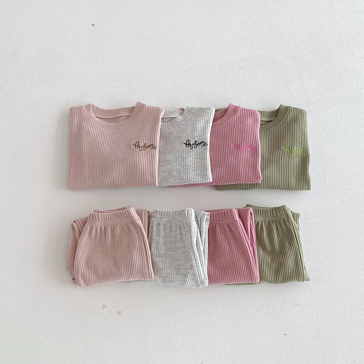 【80-130cm】セットアップ 英字刺繡 ワッフル シンプル 子供服