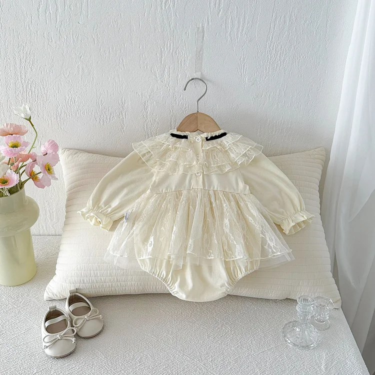 【66-90cm】ロンパース リボン レース襟 定番 肌触り良い ベビー服