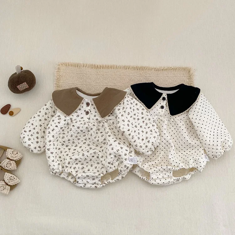 【66-100cm】ロンパース ドットOR花柄 肌触り良い ベビー服