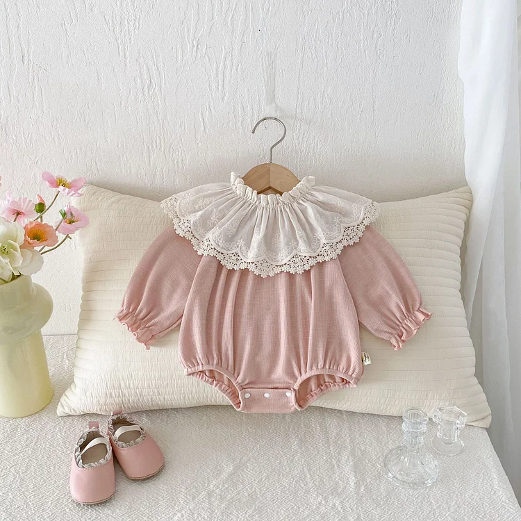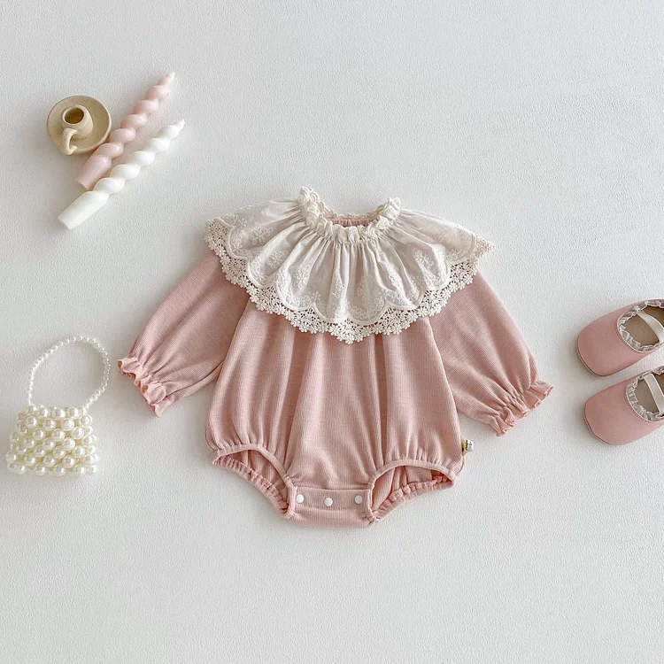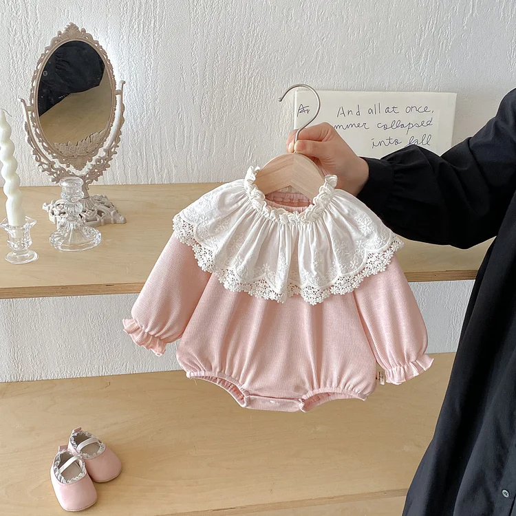 【66-100cm】ロンパース レース襟 可愛い 肌触り良い ベビー服