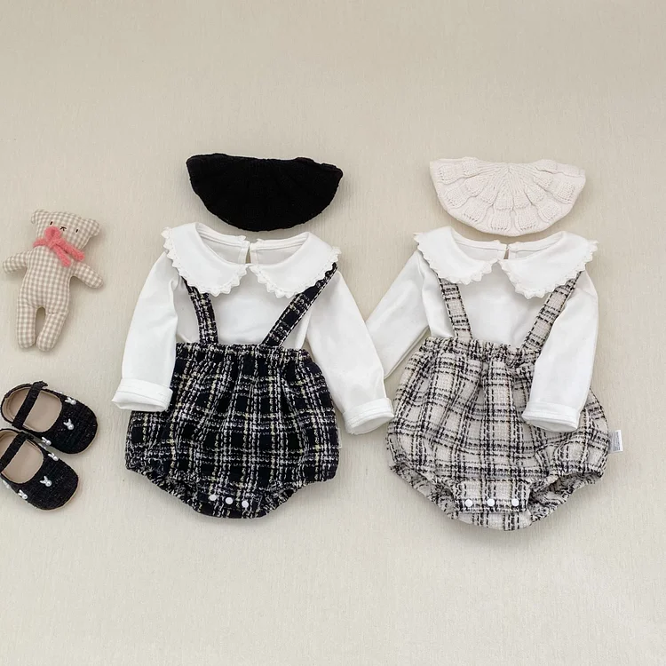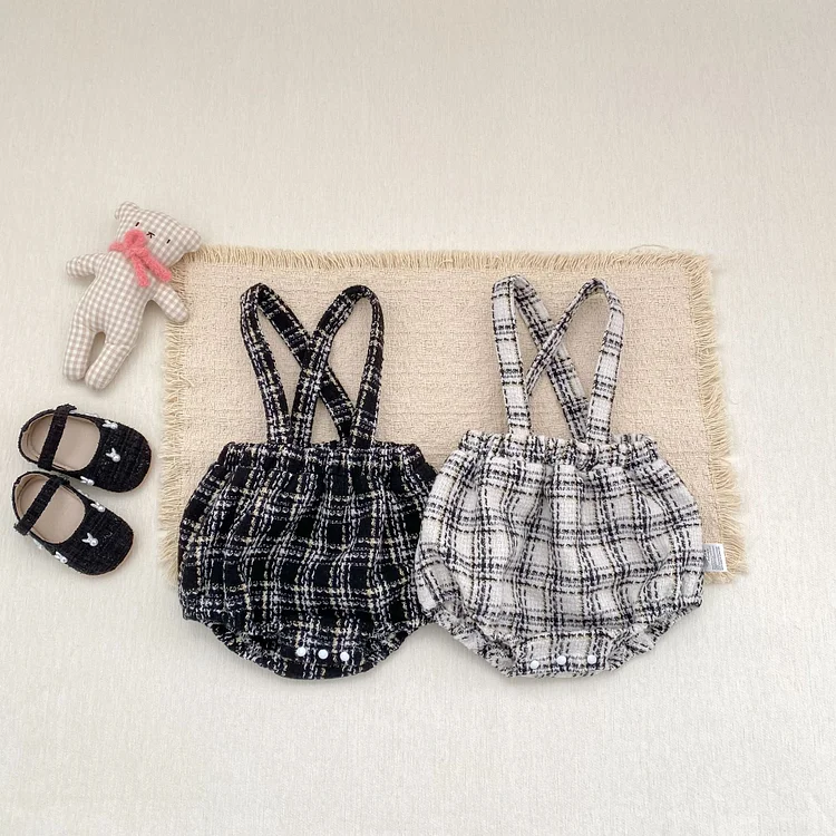 【66-100cm】ロンパース チェック柄 サロペット 可愛い ディリー