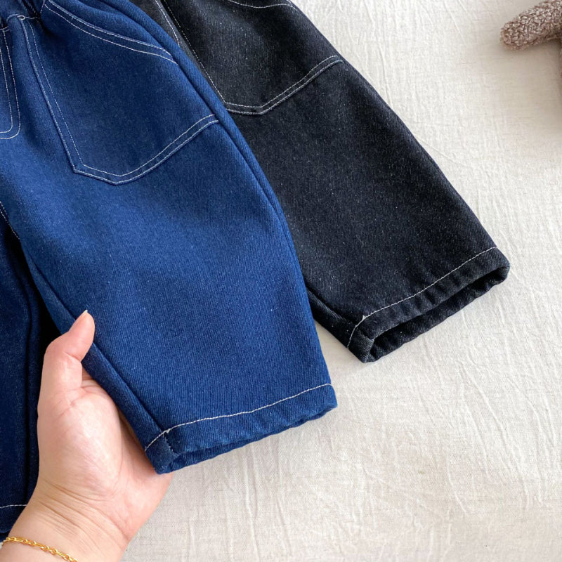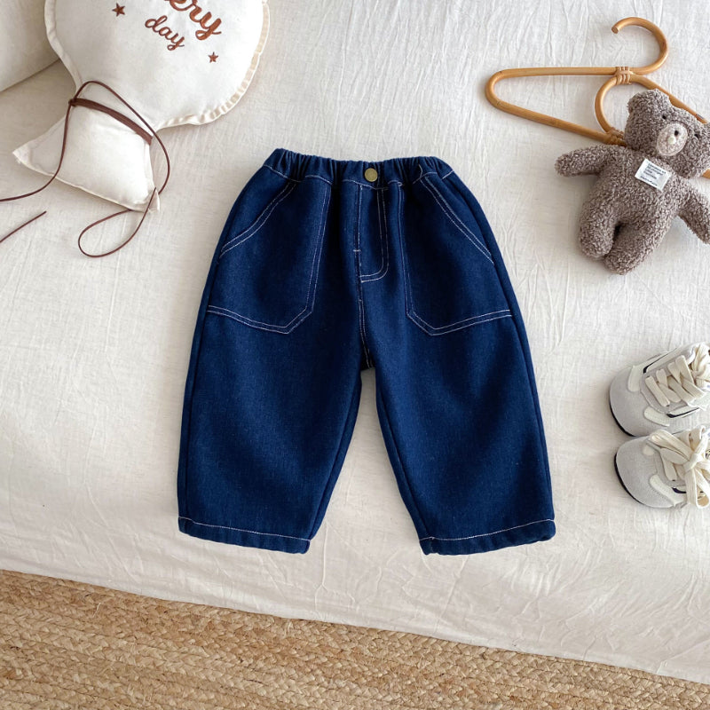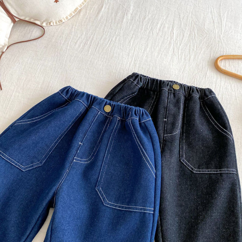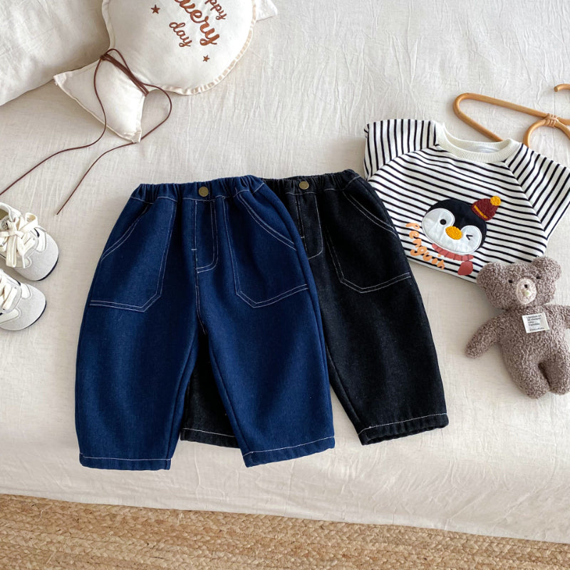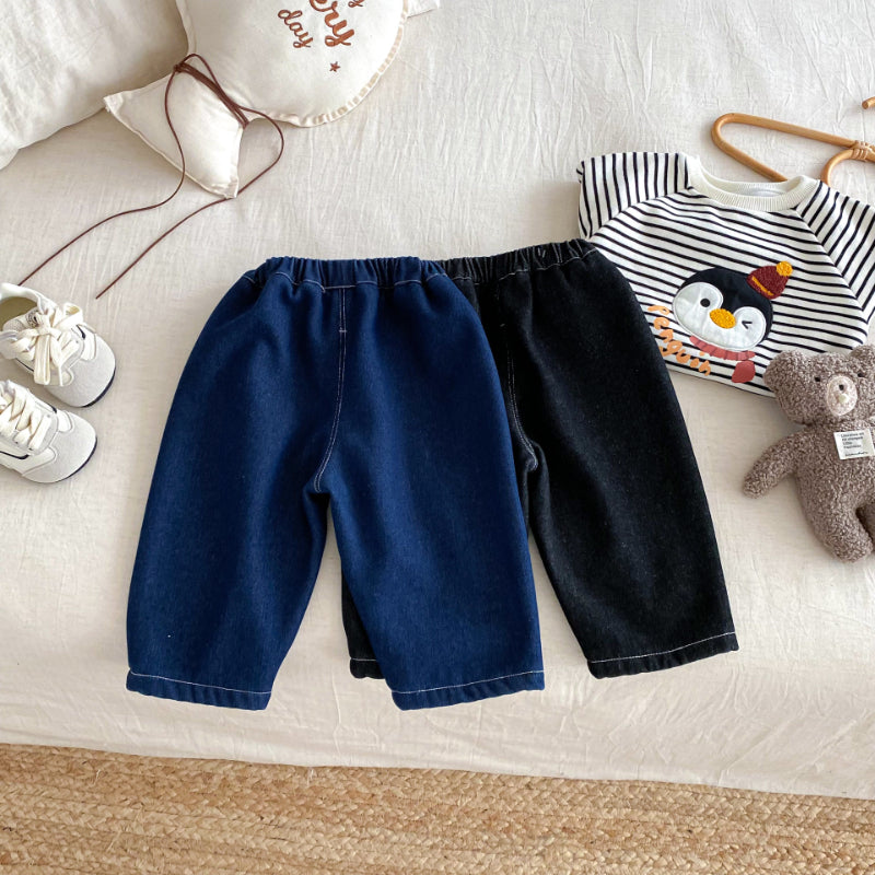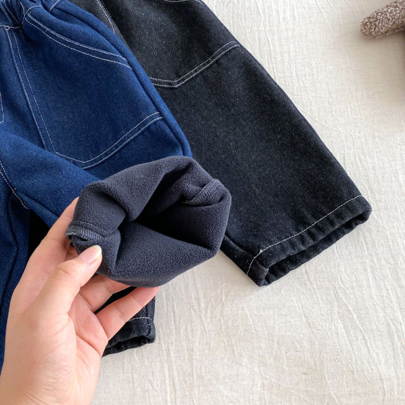 【73-120cm】 無地 裏起毛 デニムパンツ