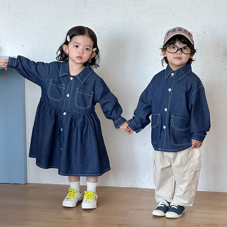 【80-150cm】シャツ or ワンピース デニム カジュアル 定番