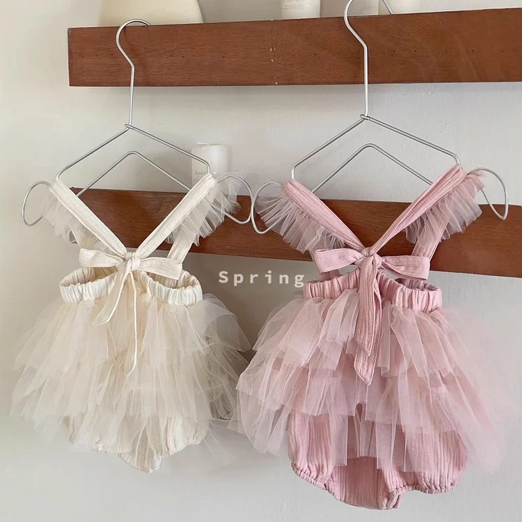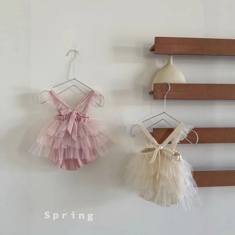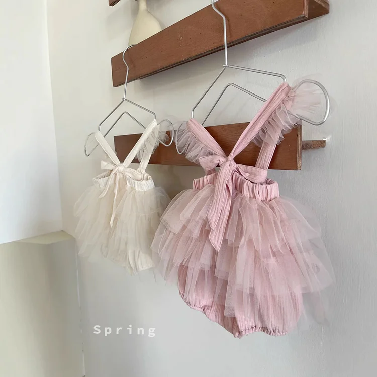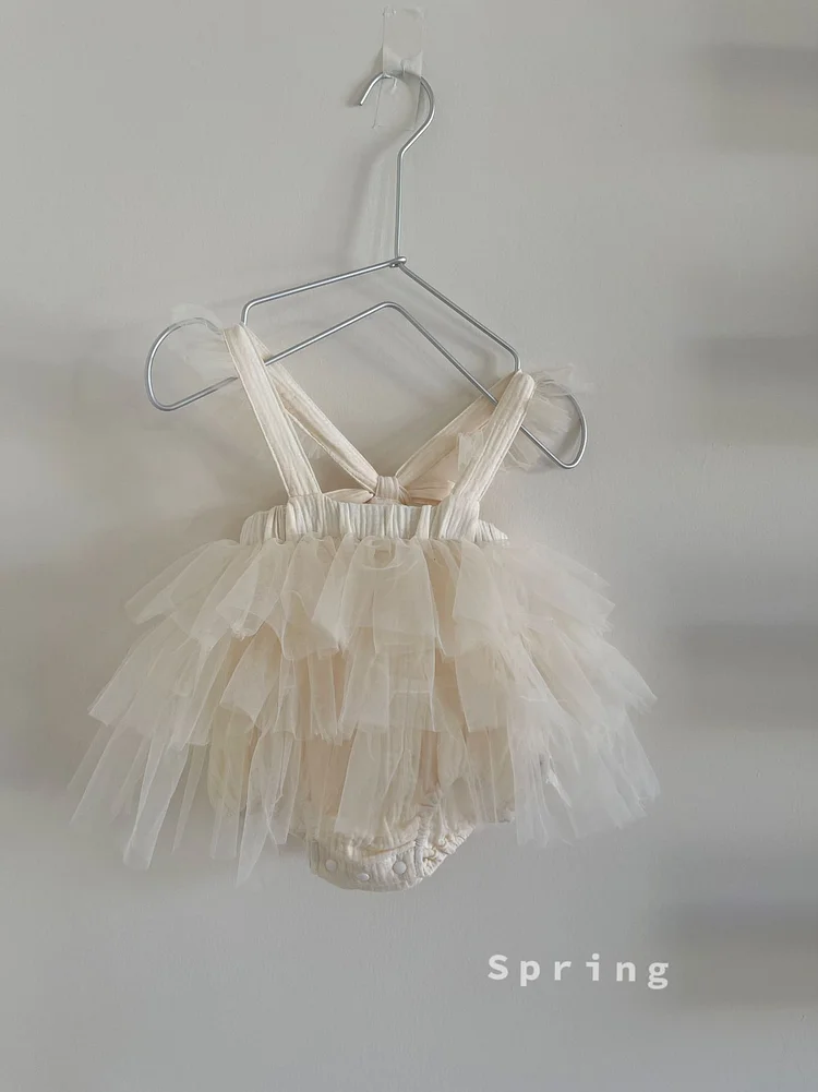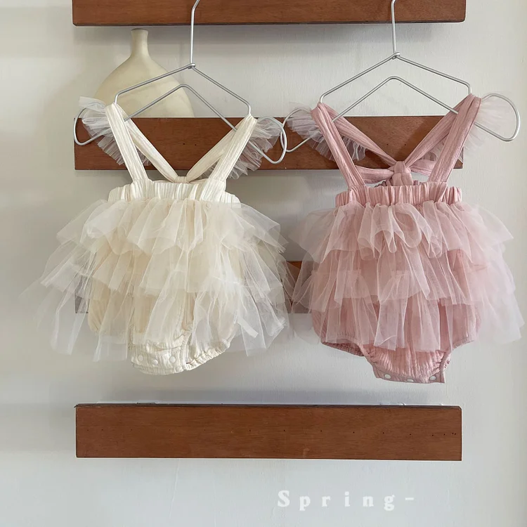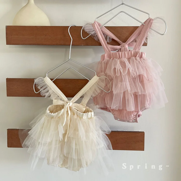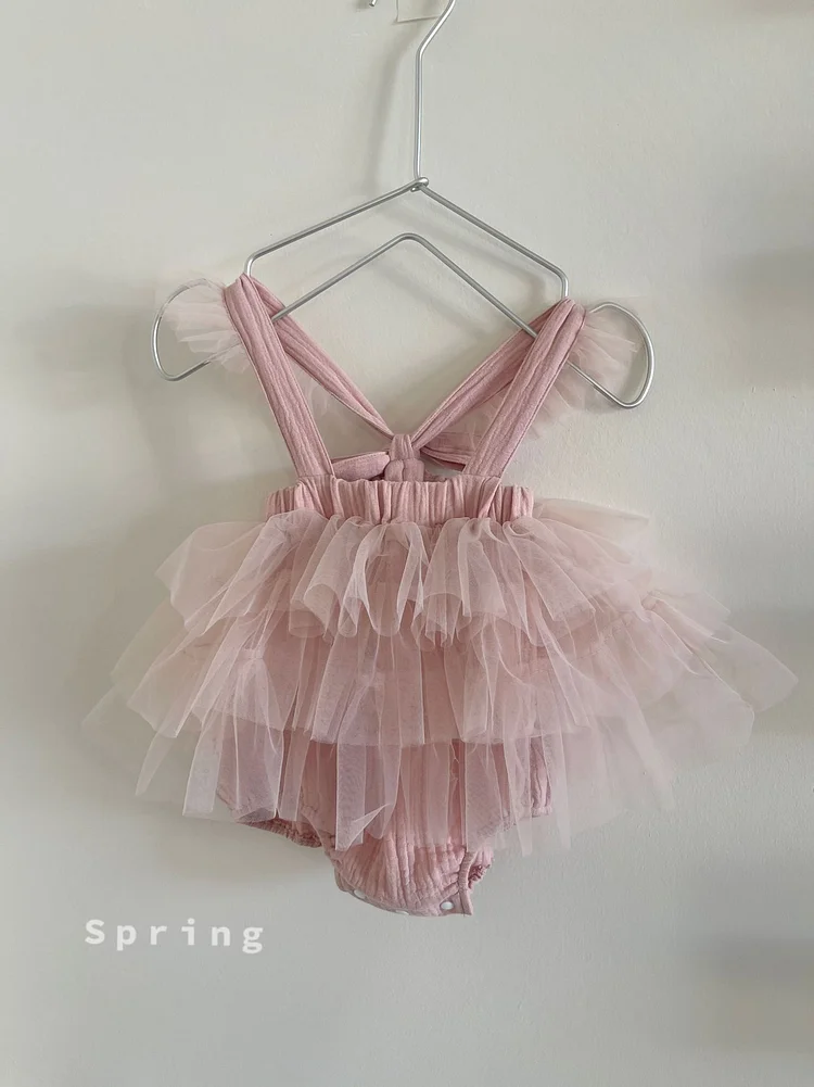 【73-90cm】ロンパース ワンピース風 チュール 可愛い