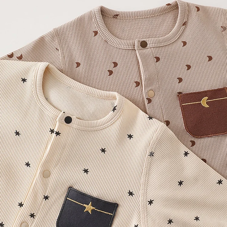 【59-90cm】オールインワン 星or月柄 肌に優しい ベビー服