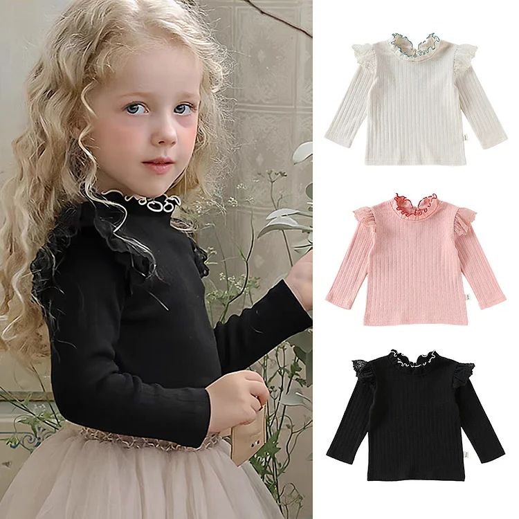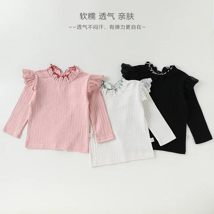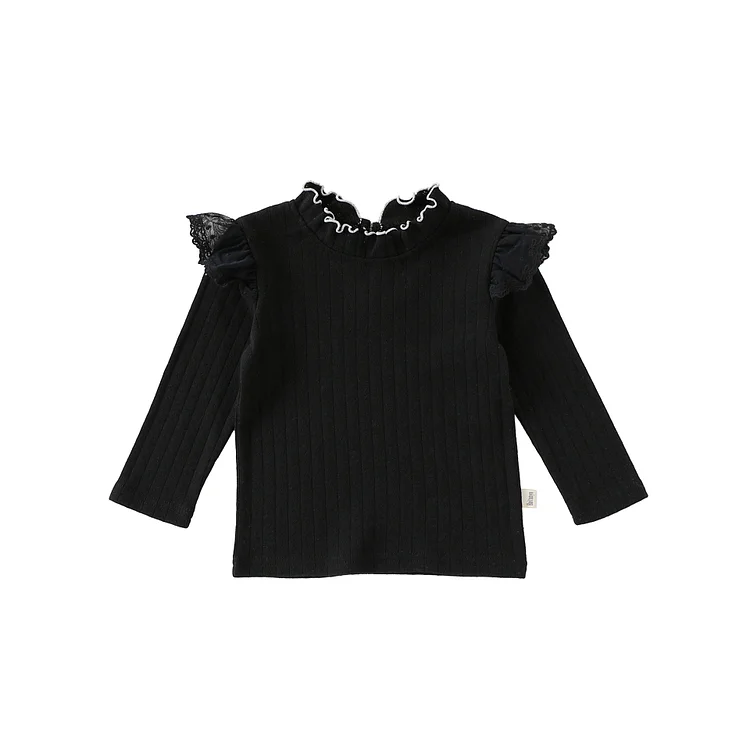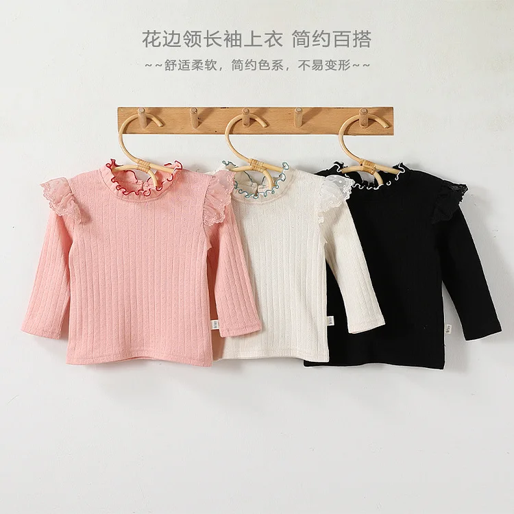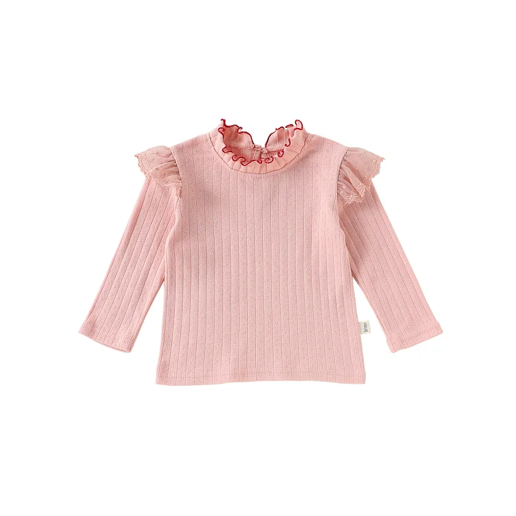 【73-110cm】シャツ 肩フリル シンプル 合わせやすい 長袖 トップス
