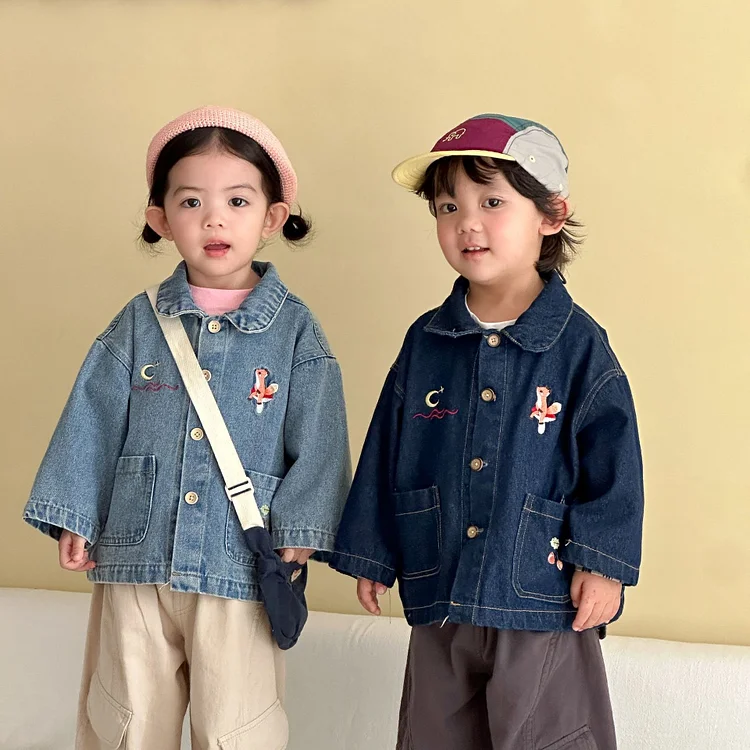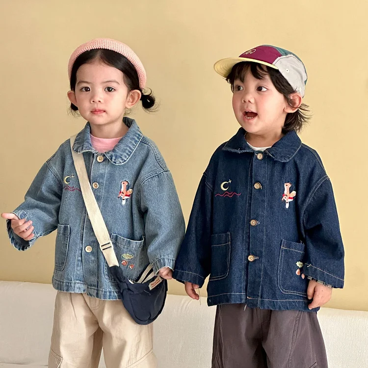 【80-150cm】デニム アウター ポケット付き カジュアル 人気