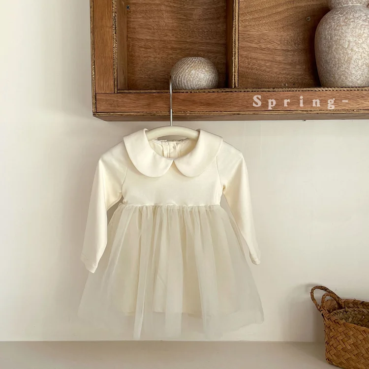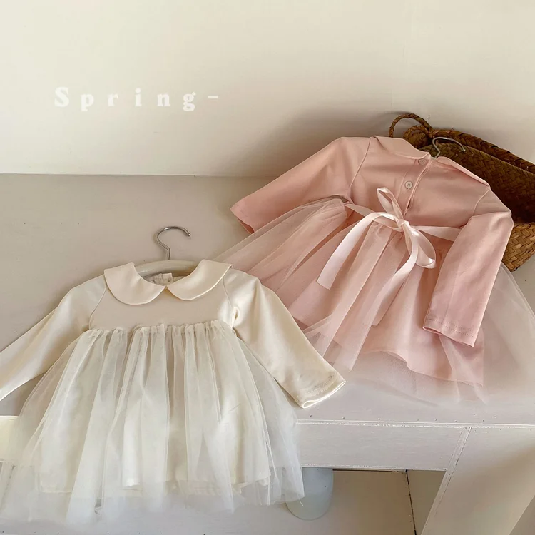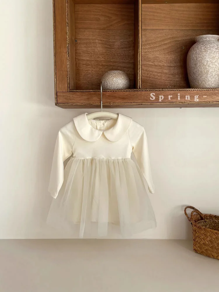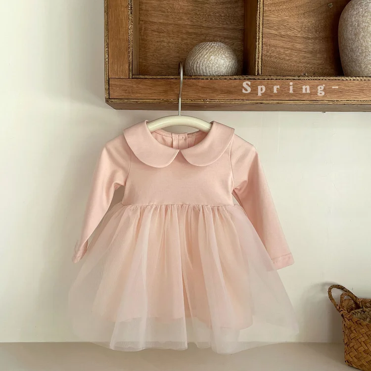 【73-100cm】ロンパース 丸襟 チュール リボン おしゃれ