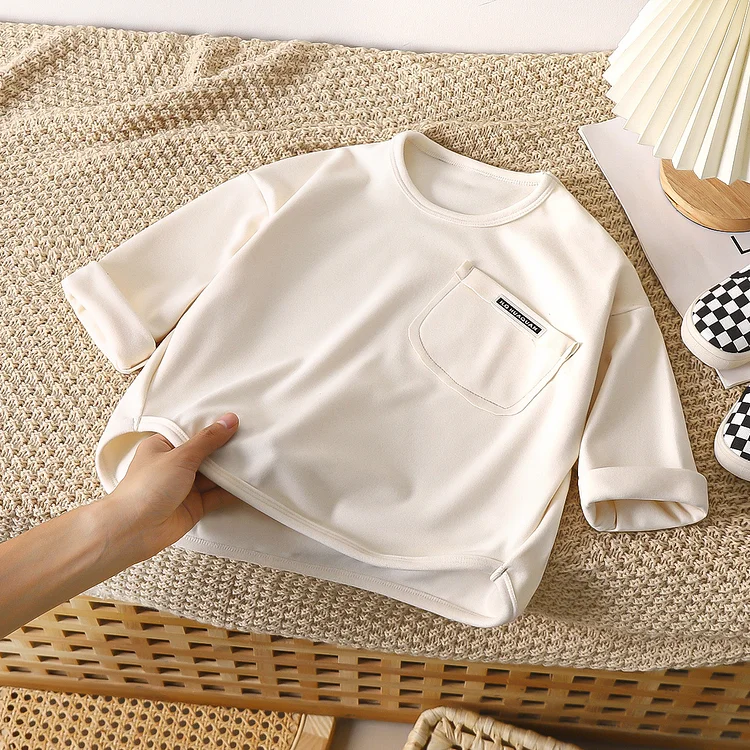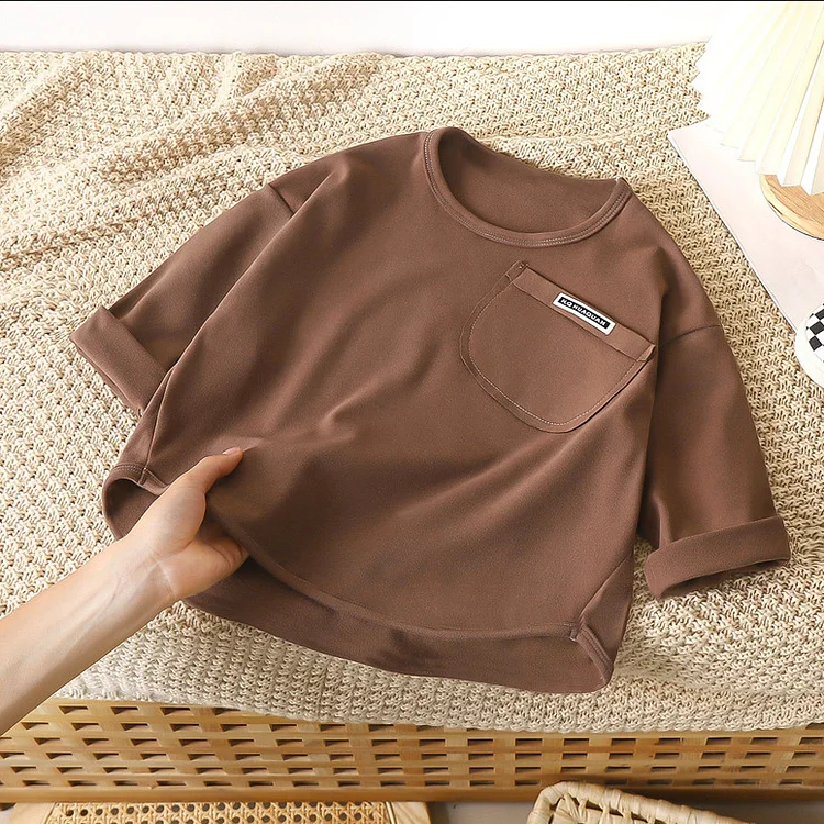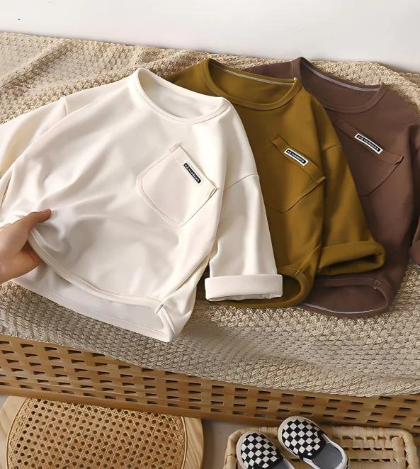 【80-150cm】Tシャツ ポケット付き ルーズ 着心地良い 長袖 トップス