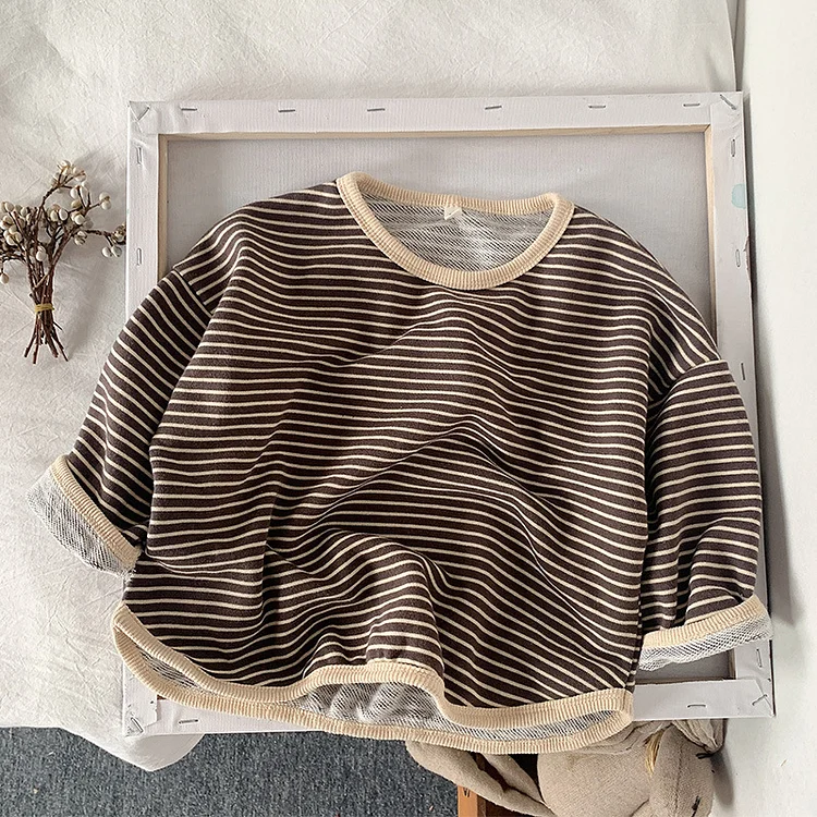 【80-130cm】Tシャツ 韓国風 ボーダー 着心地良い 合わせやすい トップス
