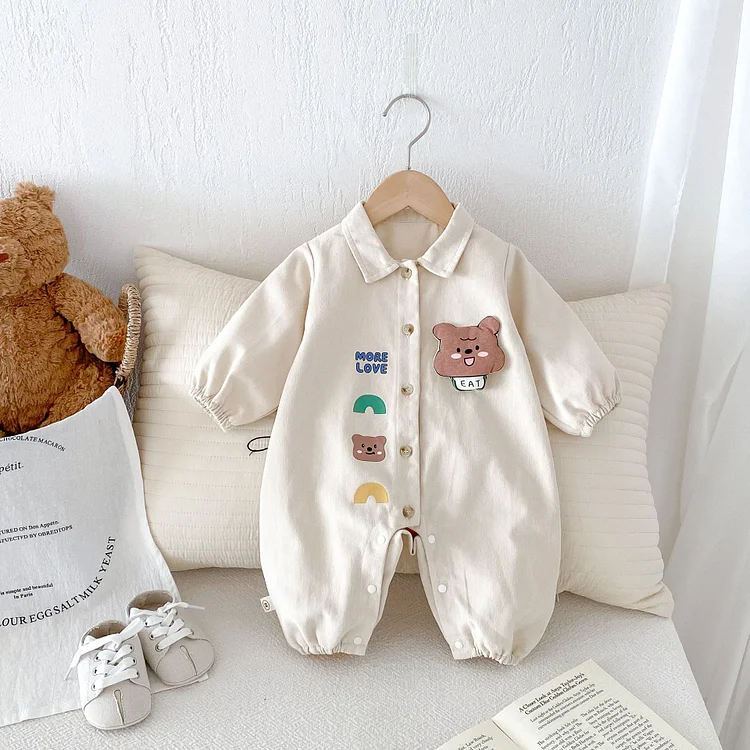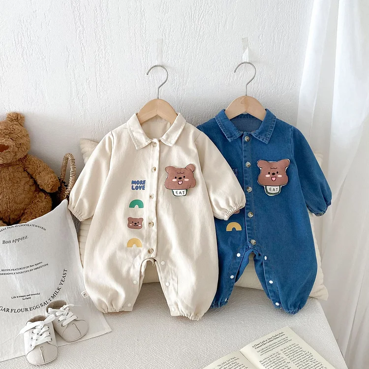 【66-90cm】オールインワン 熊柄 デニム 可愛い ベビー服