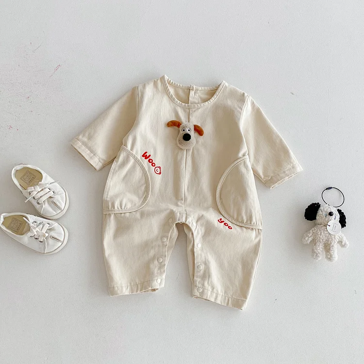 【66-90cm】オールインワン 犬柄 可愛い 着心地良い ベビー服