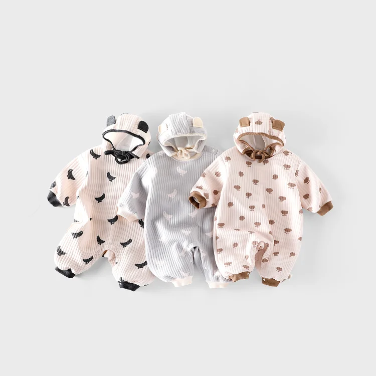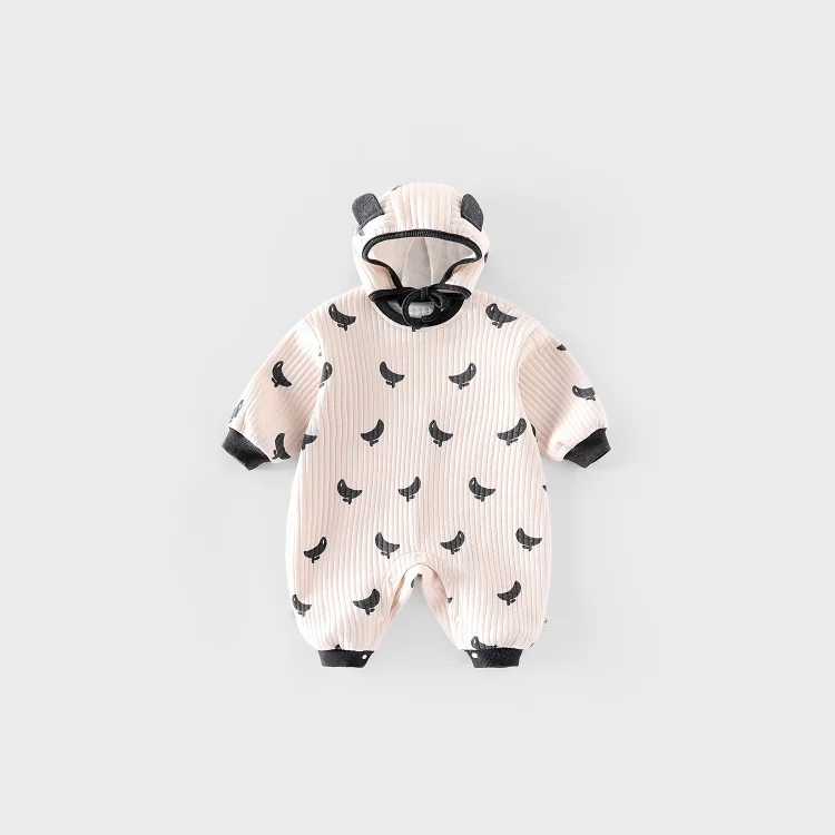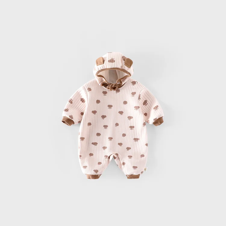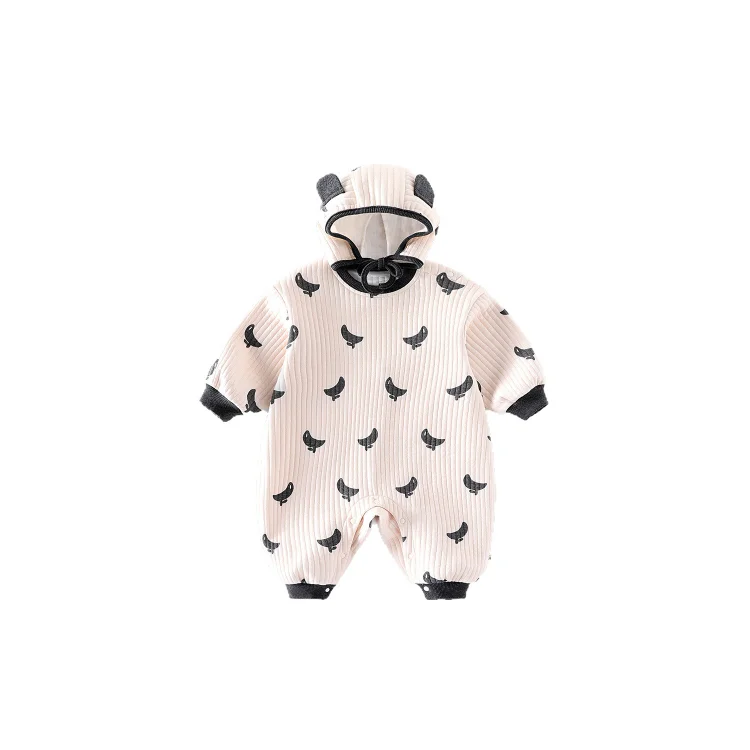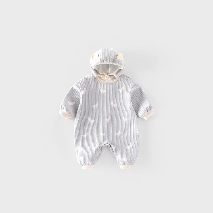 【66-90cm】オールインワン バナナ柄 ボンボン付き 厚手 可愛い ロンパース