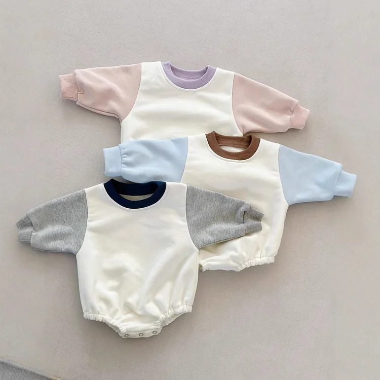 【59-100cm】ロンパース カラー 切り替え シンプル 着心地良い ベビー服
