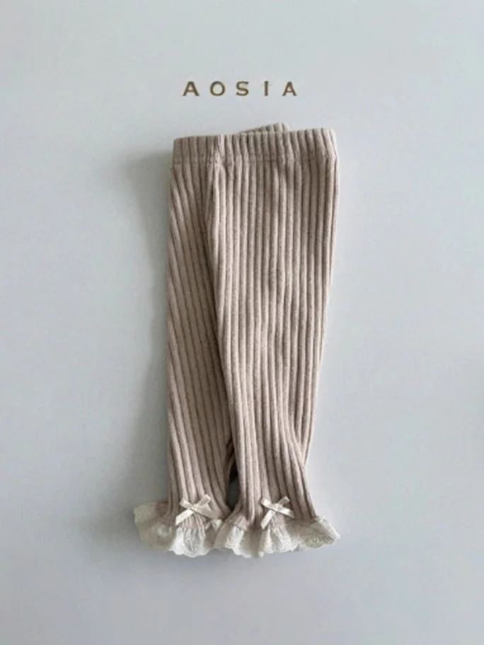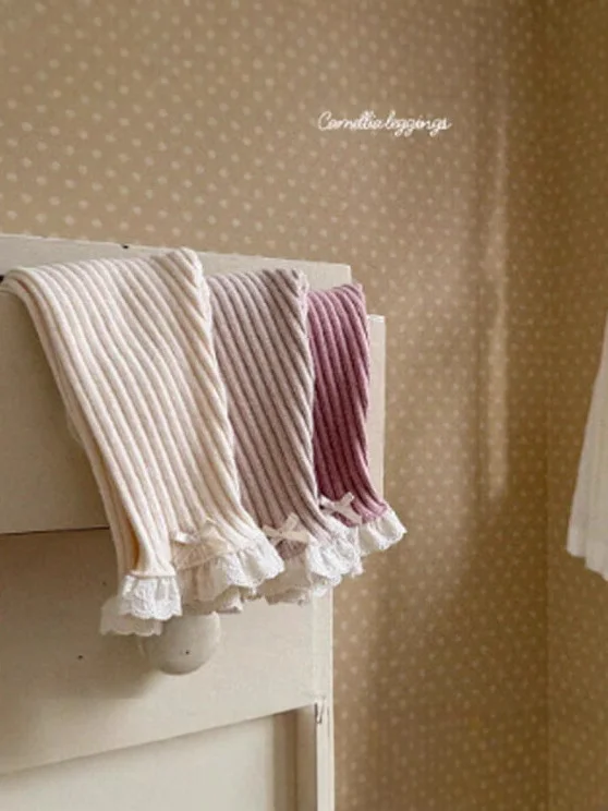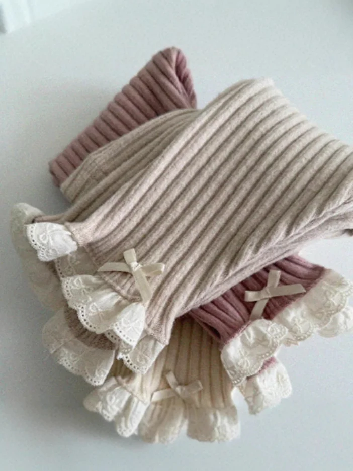 【73-110cm】レース リボン リブ レギンス