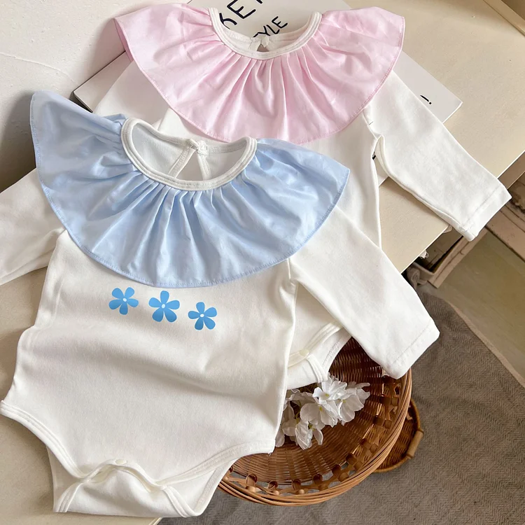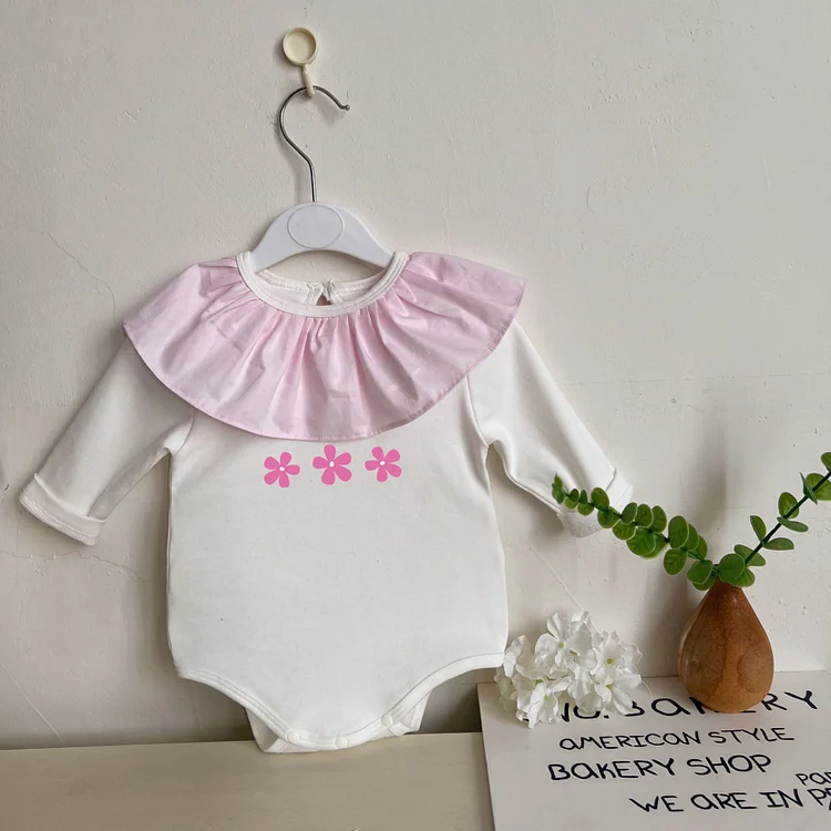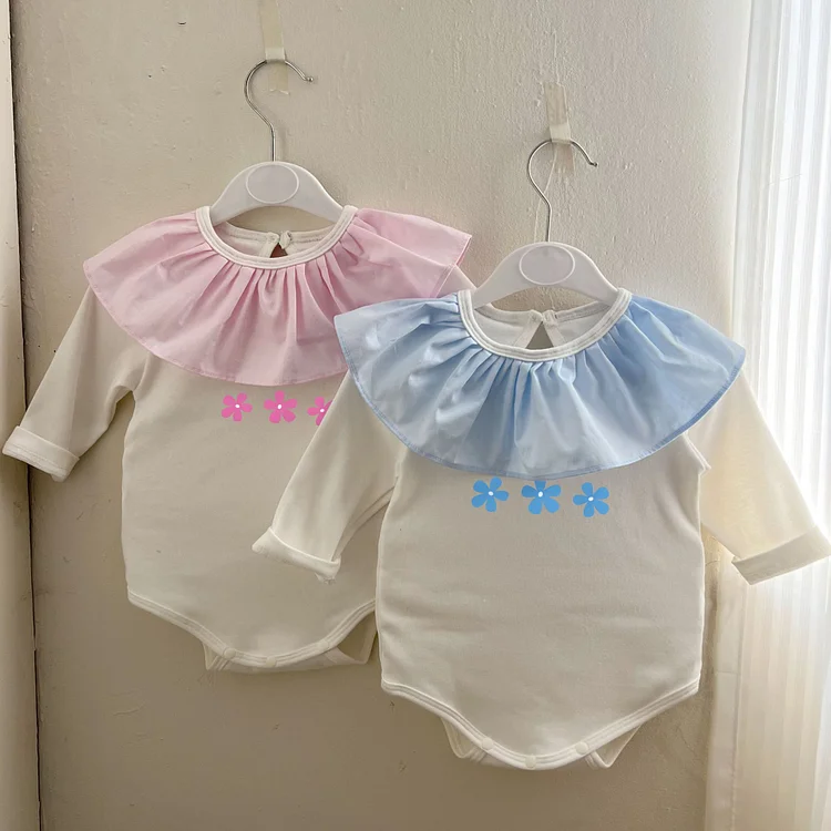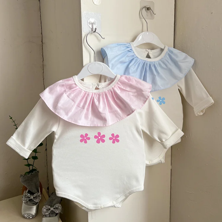 【66-90cm】ロンパース フラワー フリル襟 おしゃれ ベビー服