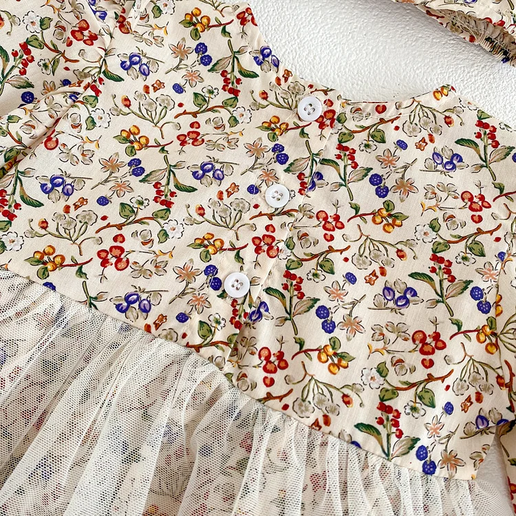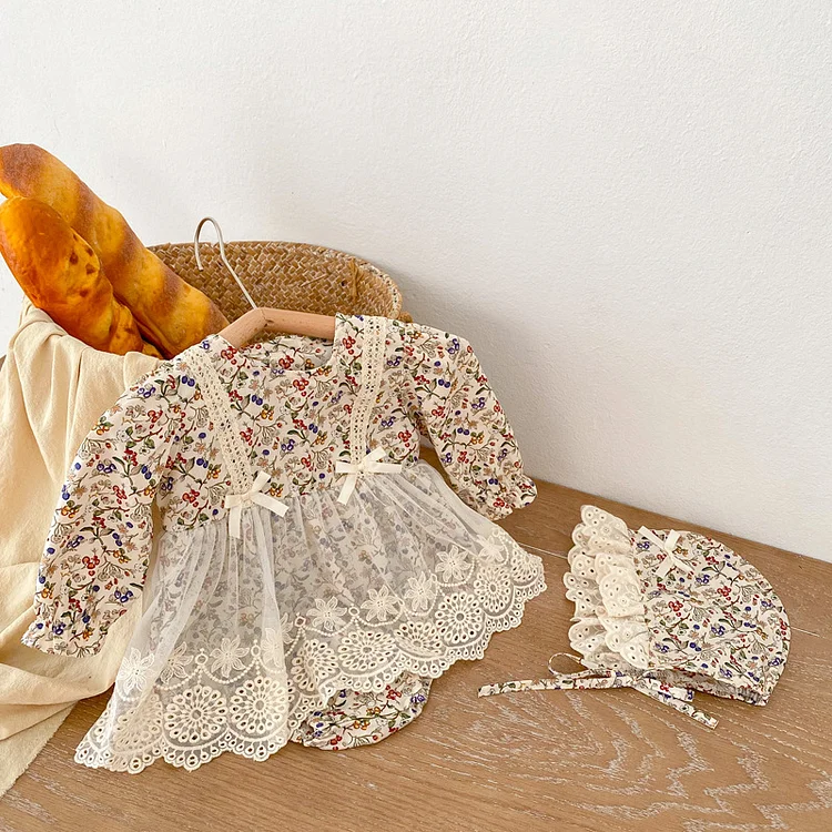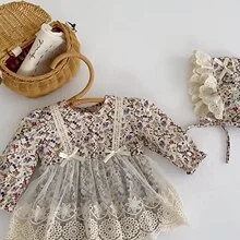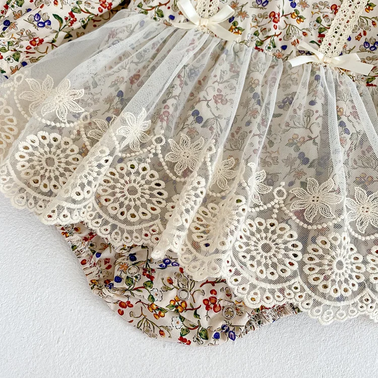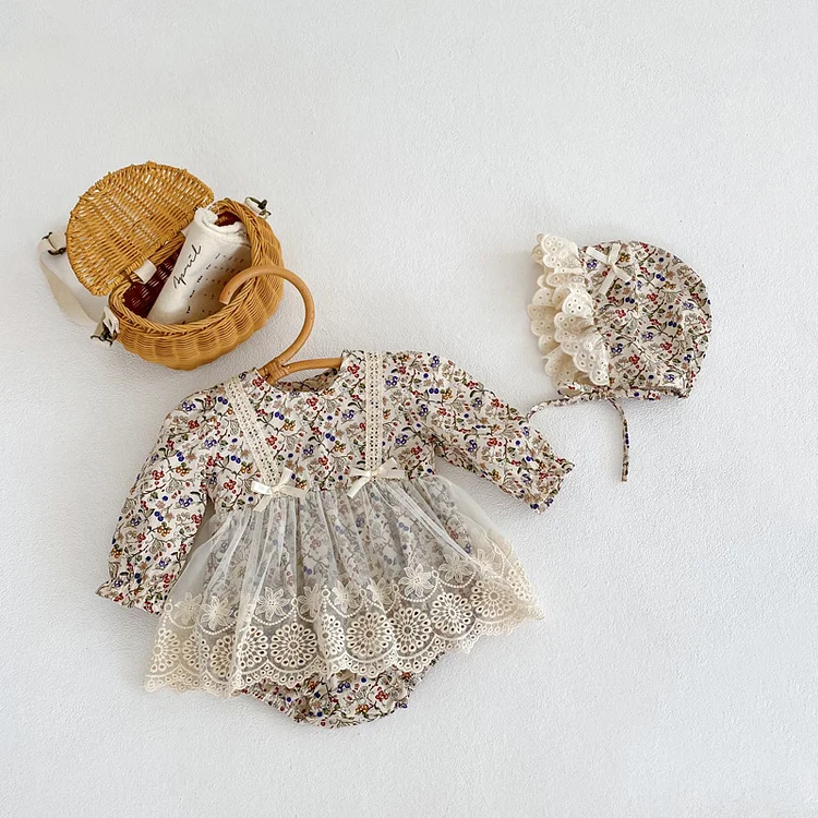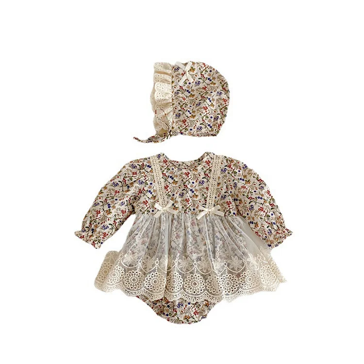 【66-90cm】 ワンピース風 花柄 ロンパース