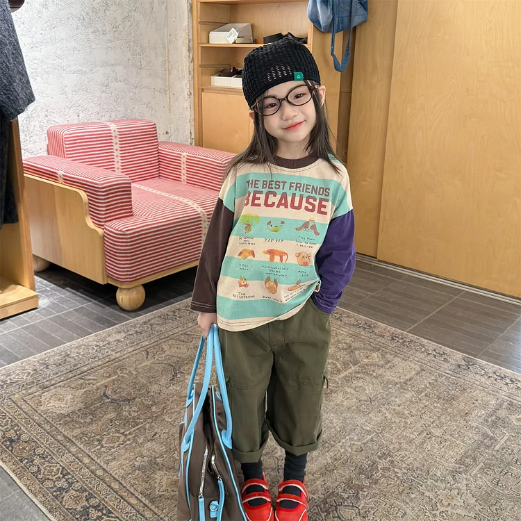 【80-130cm】Tシャツ 長袖 英字プリント 可愛い 女の子 おしゃれ