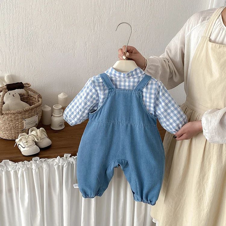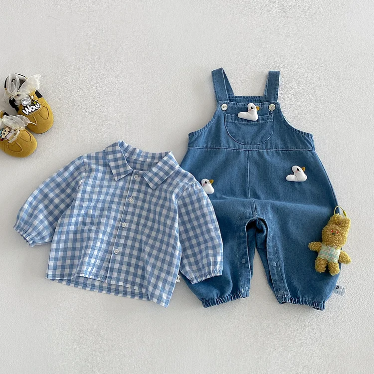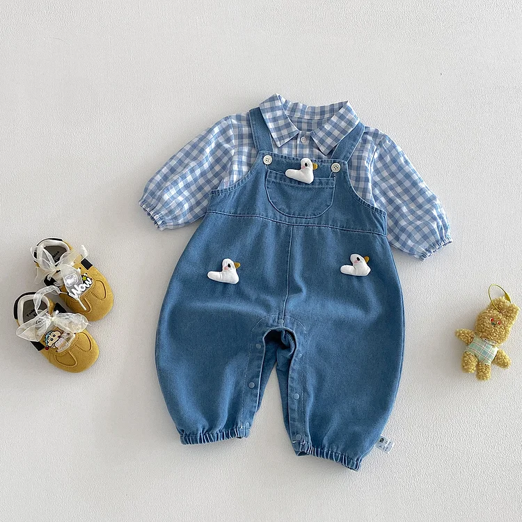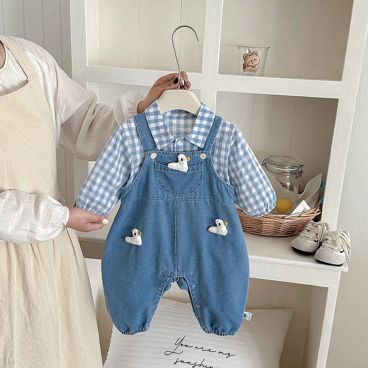 【66-90cm】セットアップ duck サロペット&トップス 2点セット