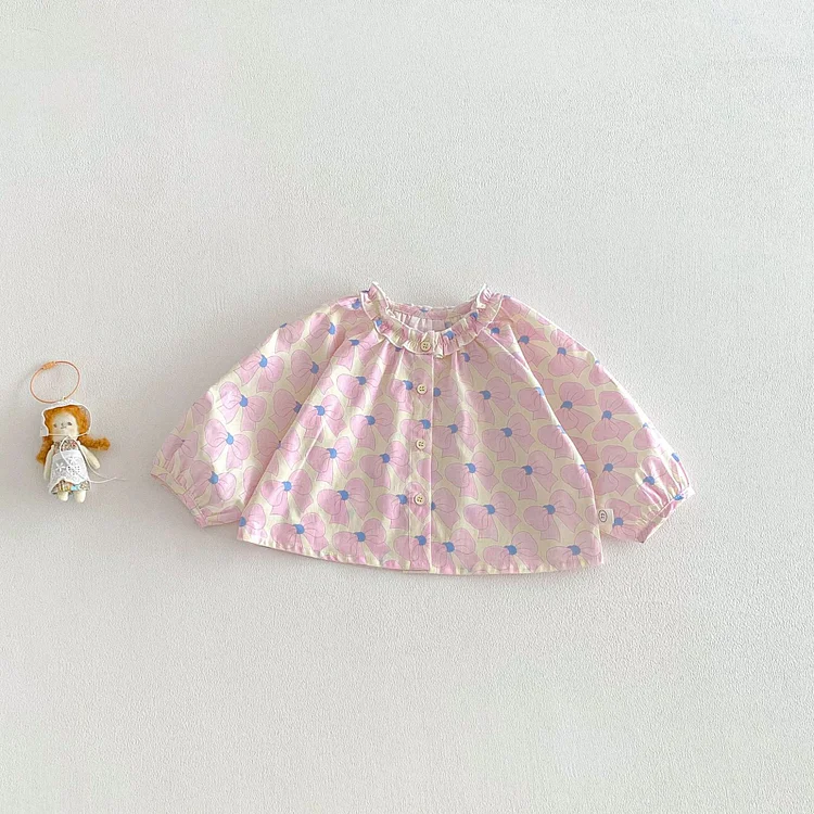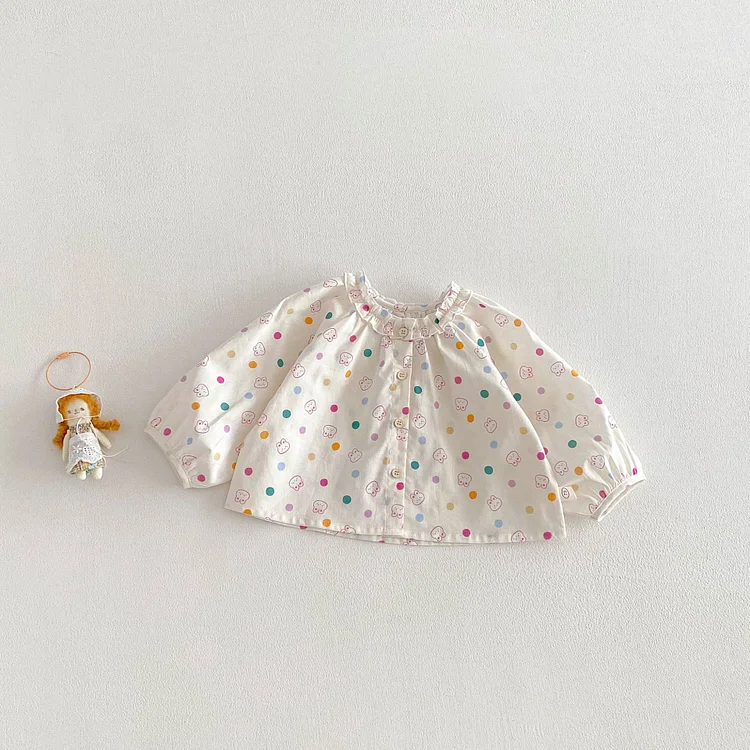 【73-120cm】ベビー 女の子 シャツ クールネック フラワーorウサギ柄
