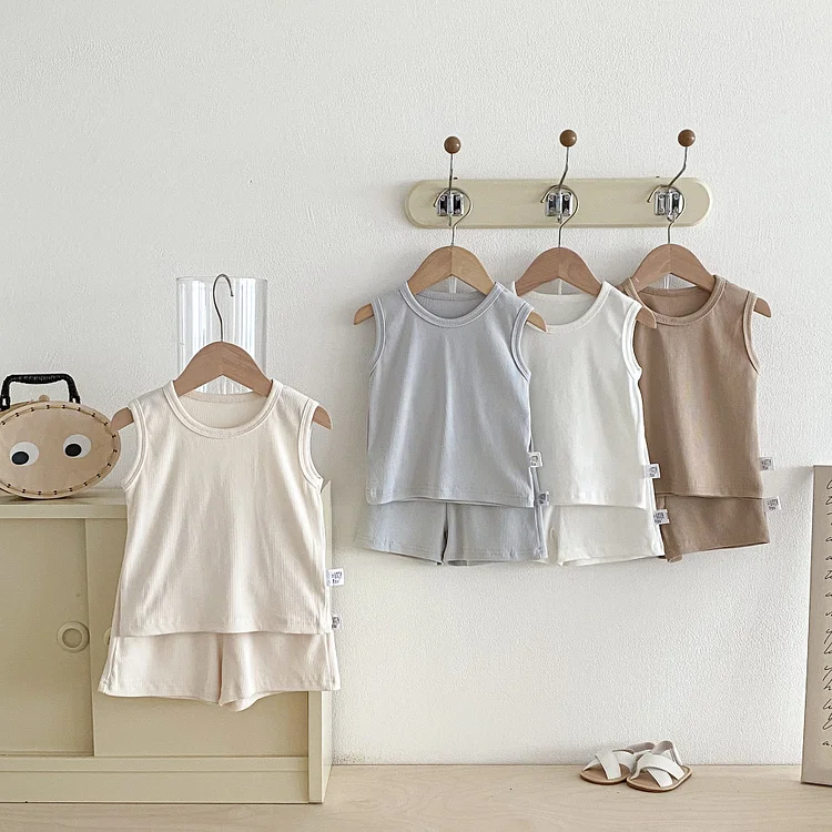 【73-100cm】ベビー セットアップ 無地 シンプル カジュアル