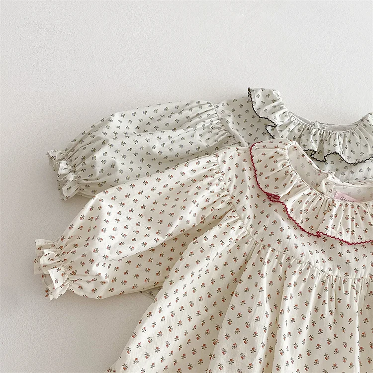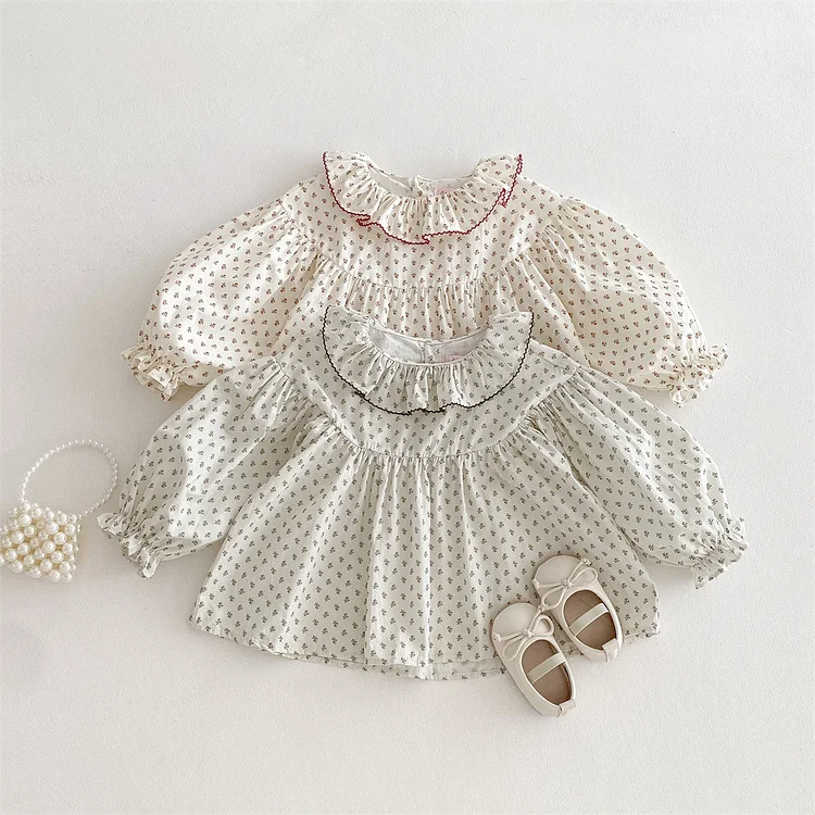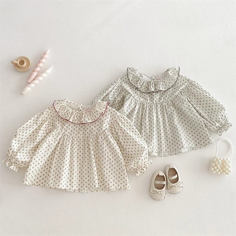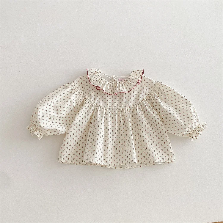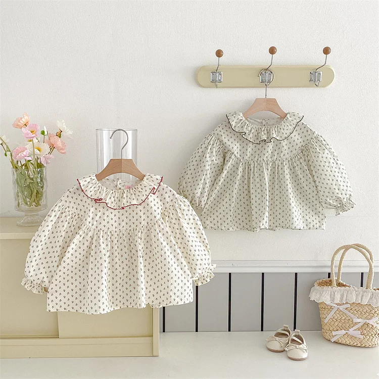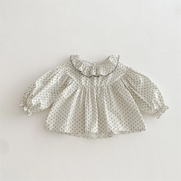 【80-120cm】ベビー 女の子 フリル襟 小花柄 シャツ
