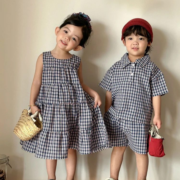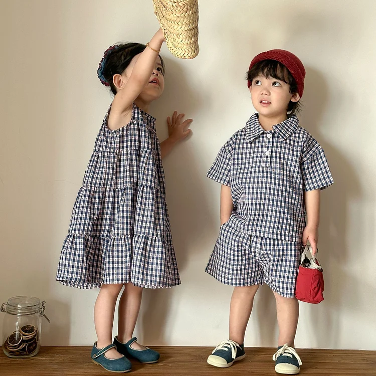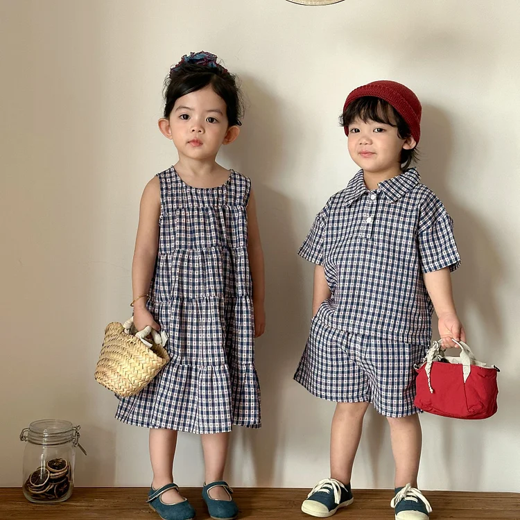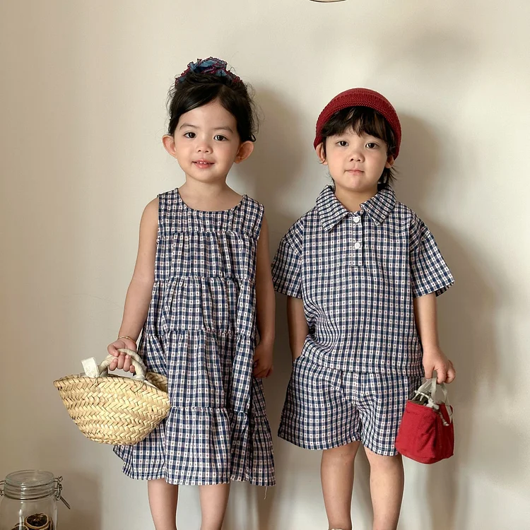 【80-150cm】キッズ チェク柄 セットアップ or ワンピース