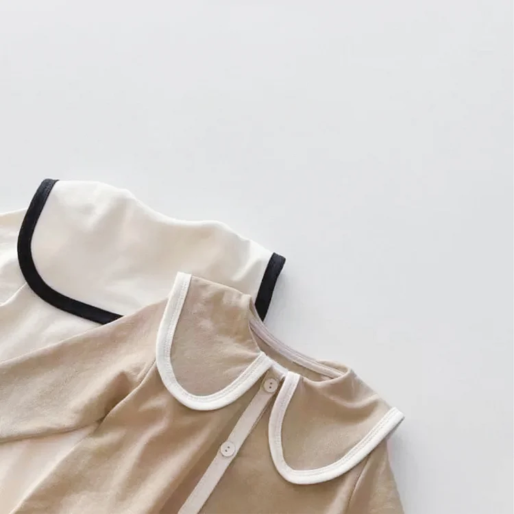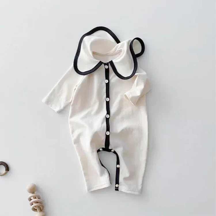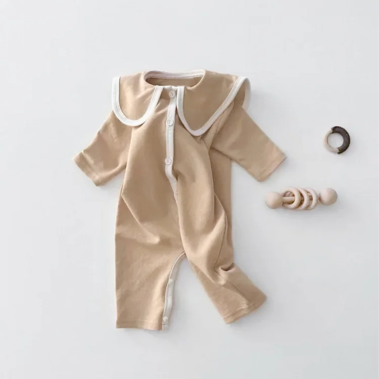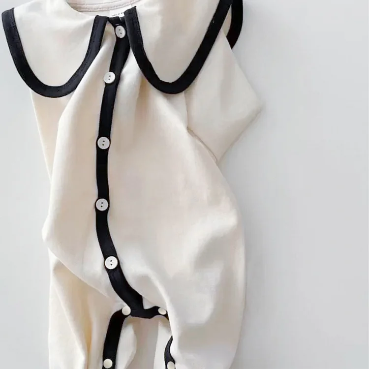 【66-90cm】韓国風丸襟ノーカラー オールインワン