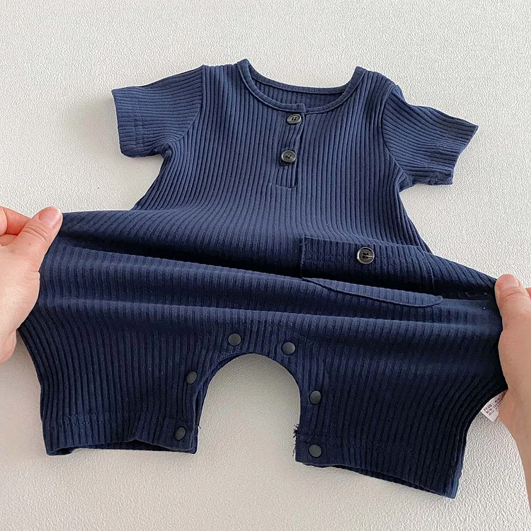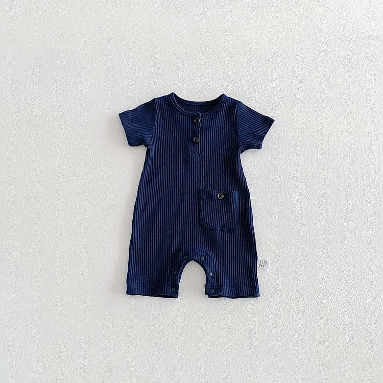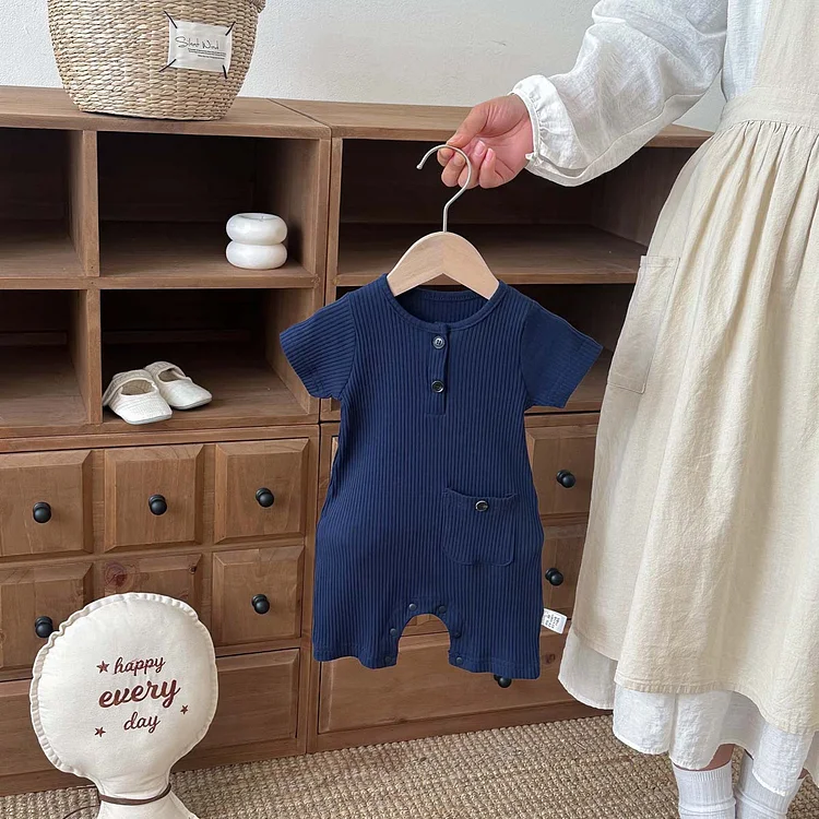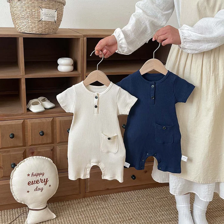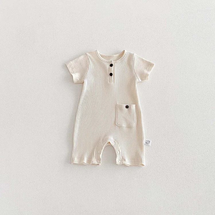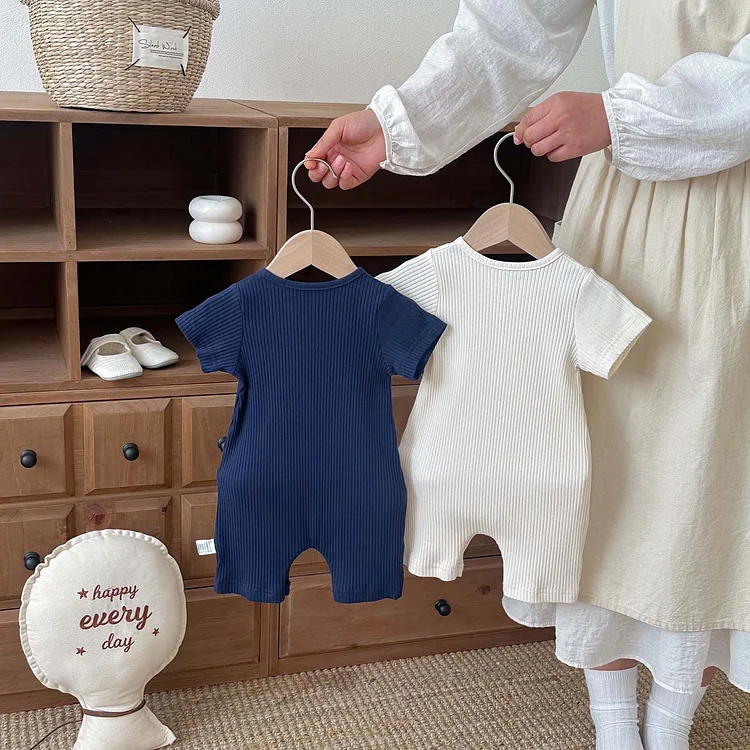 【66-90cm】ベビーナチュラル 無地 半袖 ロンパース