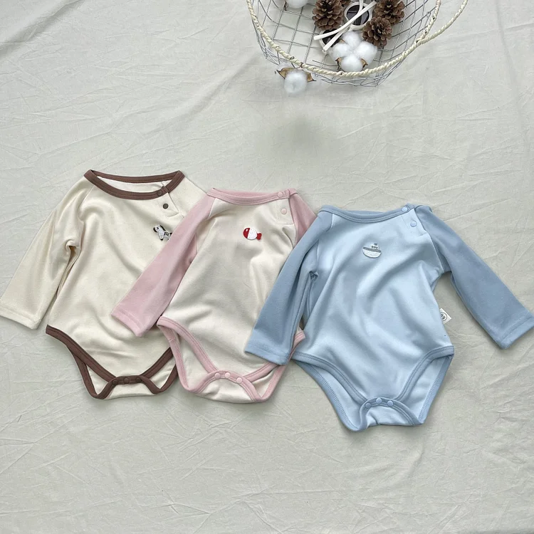 【59-90cm】ベビー ツーカラー 肌に優しい ロンパース