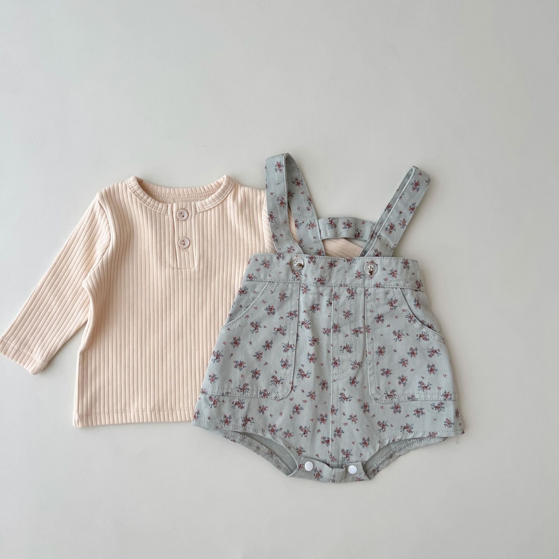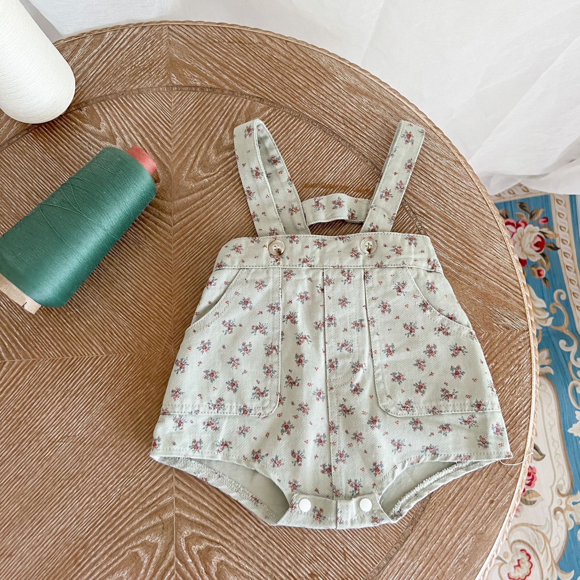 【66-100cm】デニム サロペット 花柄 可愛い お出かけ用