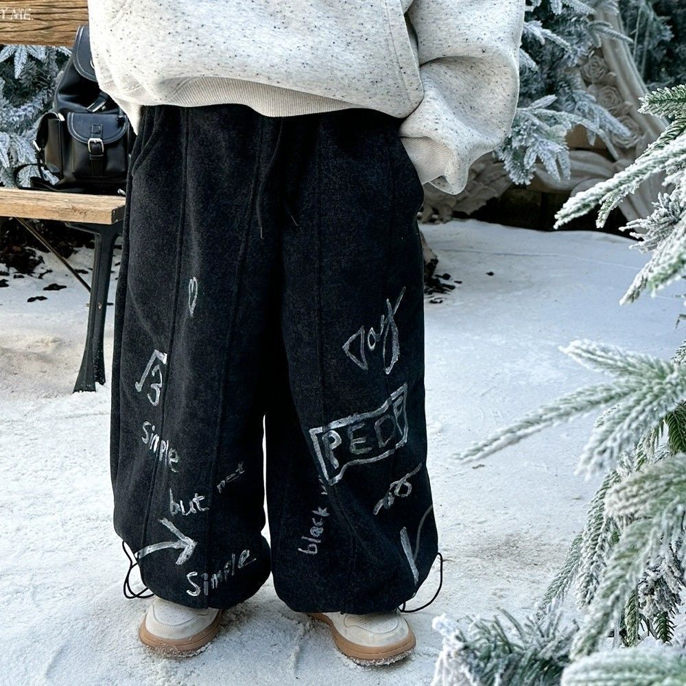 【90-150cm】ユニーク ゆったり 裏起毛 ボトムス パンツ