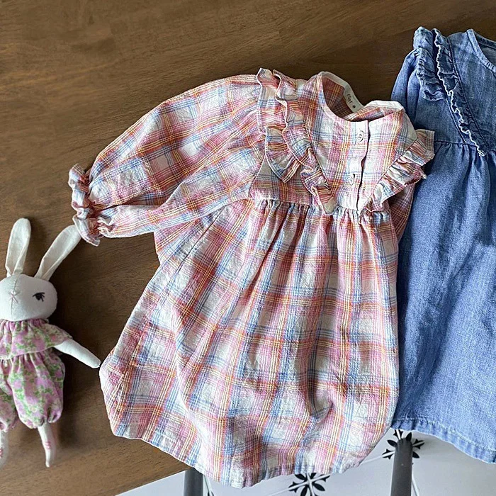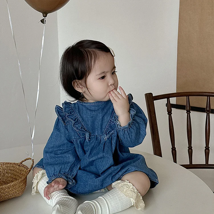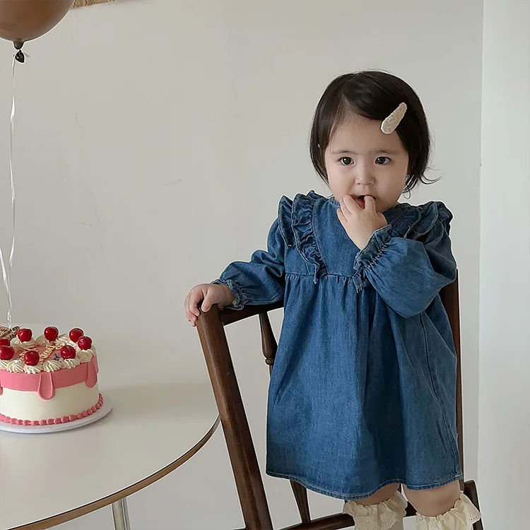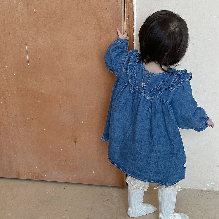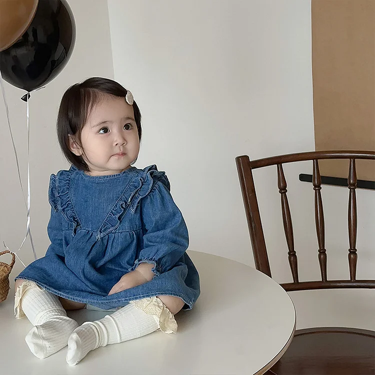 【73-100cm】デニムワンピース ベビー 女の子 肩フリル