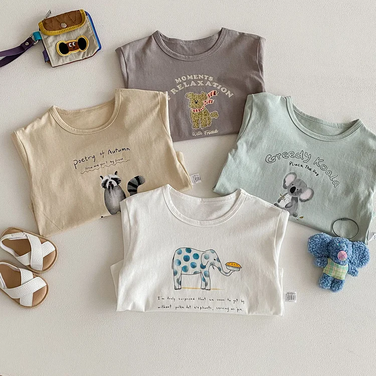 【90-130cm】Tシャツ 男女兼用 動物柄 プリント